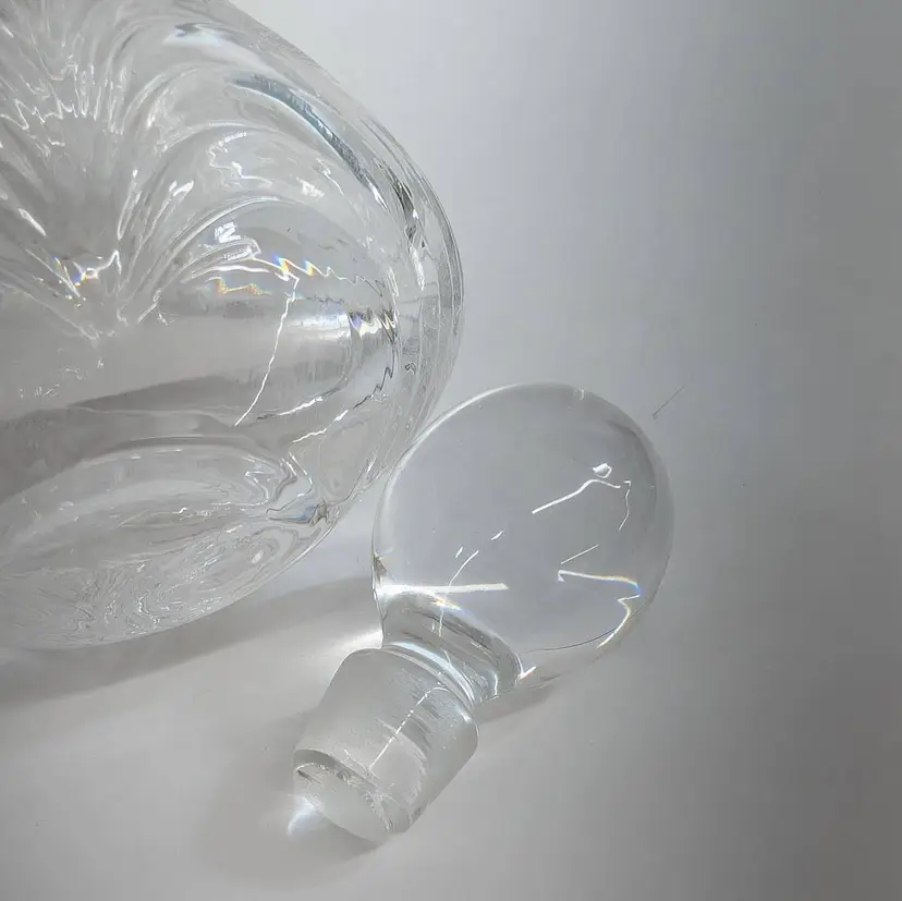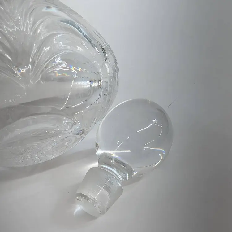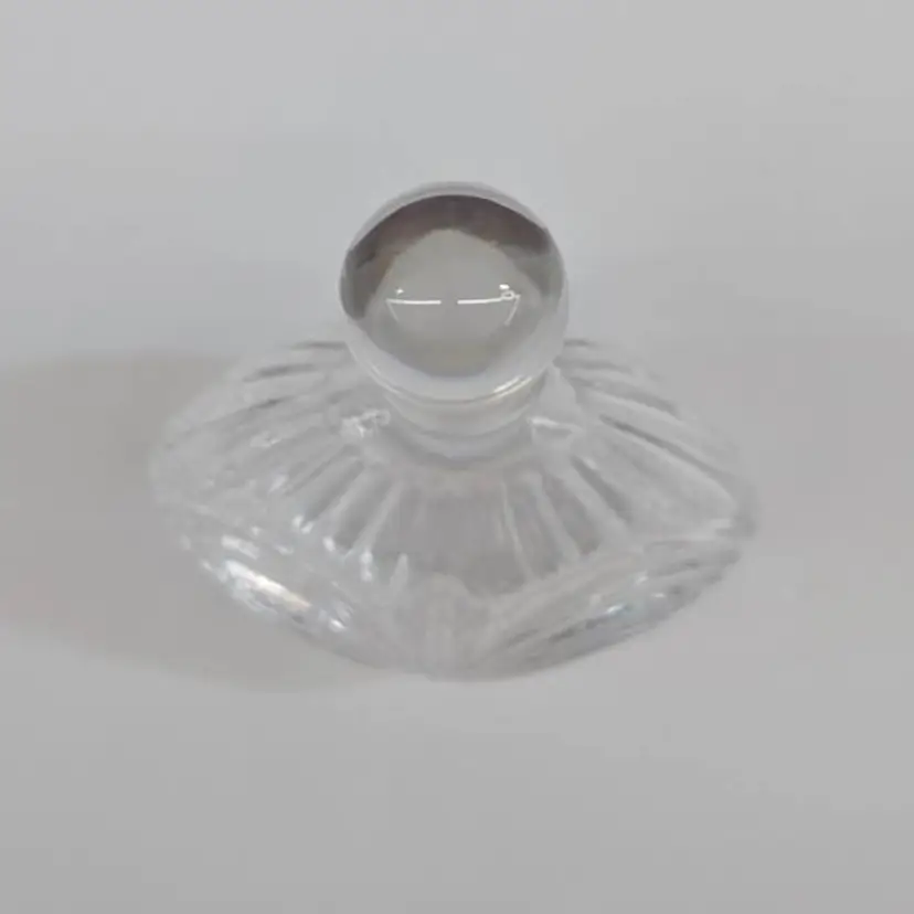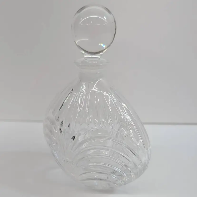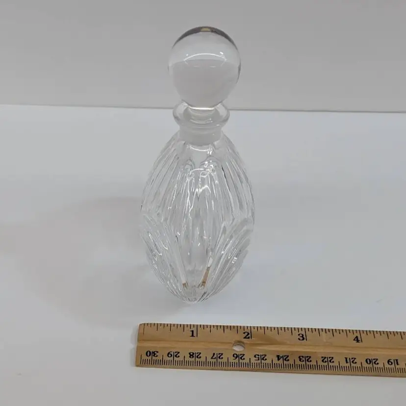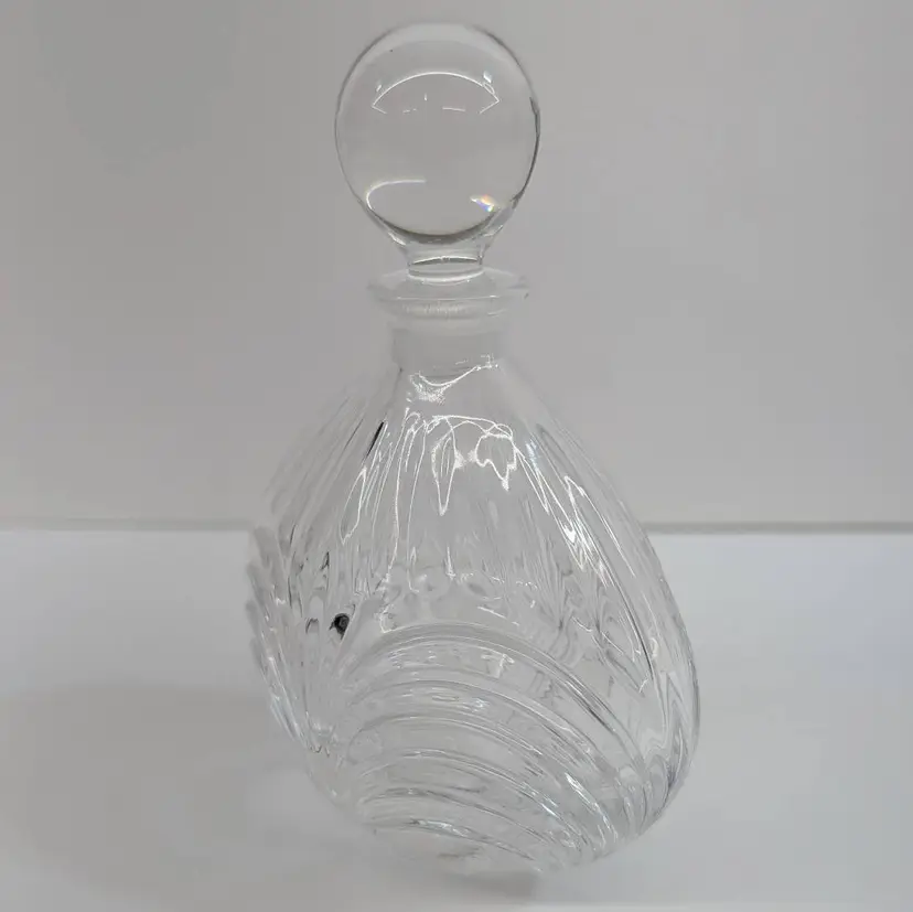 Clear, crystal perfume bottle from Royal Crystal Rock. If has a nice drape pattern and ball stopper. In nice, used condition but there is a line around the stopper and a small flea bite on the base of the stopper (see pictures). Measurements ~ 4 x 2 x 5"