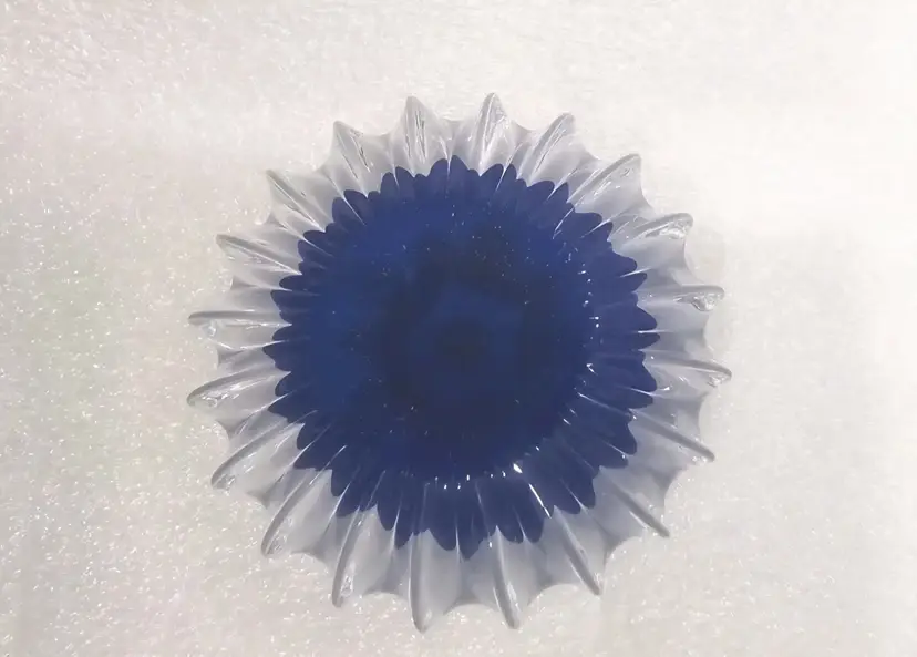 Small Perthshire Art Glass Miniature Millefiori Paperweight with Scalloped Edge. Filled with multi-colored Millefiori canes, this would be an amazing piece to add to your collection. I THINK their signature P is in the center.