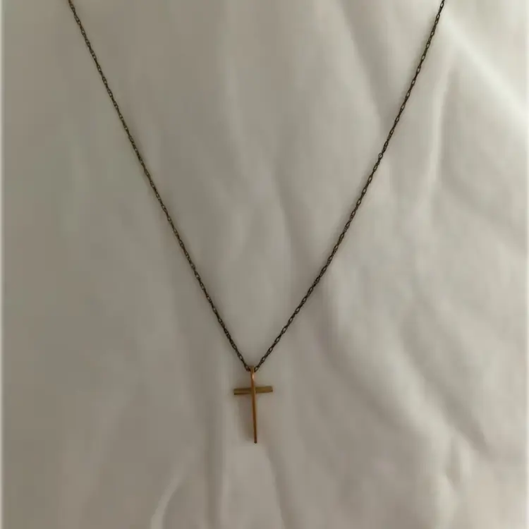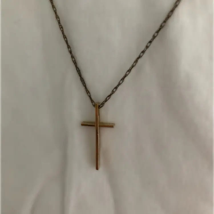 Vintage petite 1/20 14k goldchain. It measures 20”. The cross pandant is signed PPC 14k GF. It measures 3/8” x 3/4”.