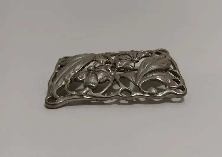 Beautiful Vintage Pewter Art Nouveau Brooch; Floral Motif; 2" L x 1.5" W Rectangle Shape; Very Nice Condition; Ready to wear!