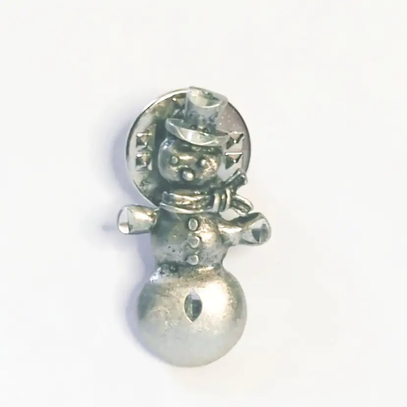 • Material: Pewter • Design: Snowman • Closure: Pin Back • Approx. Size: 1 inch • Suitable for: Winter, Holiday