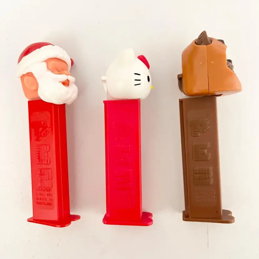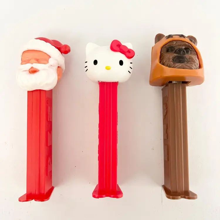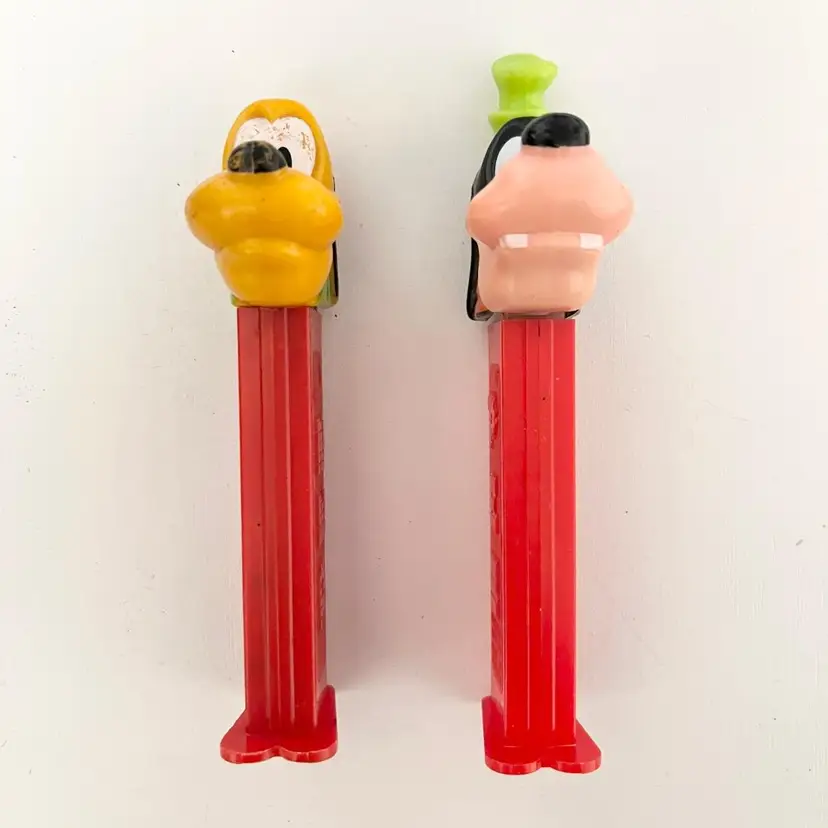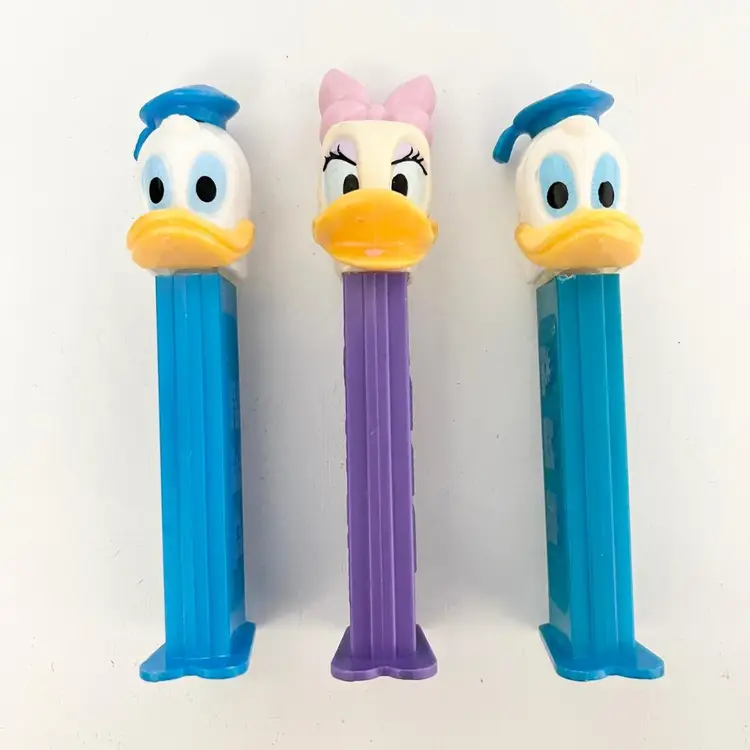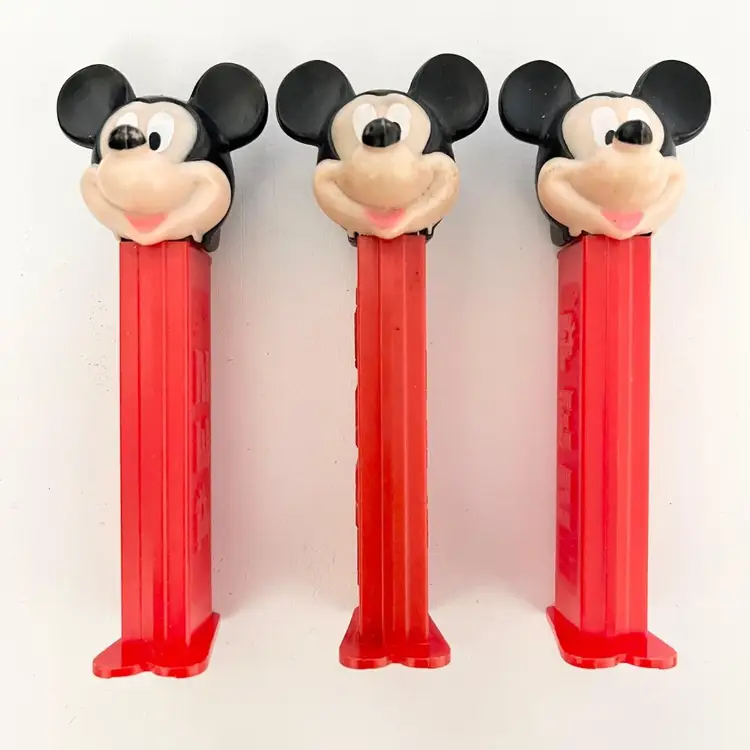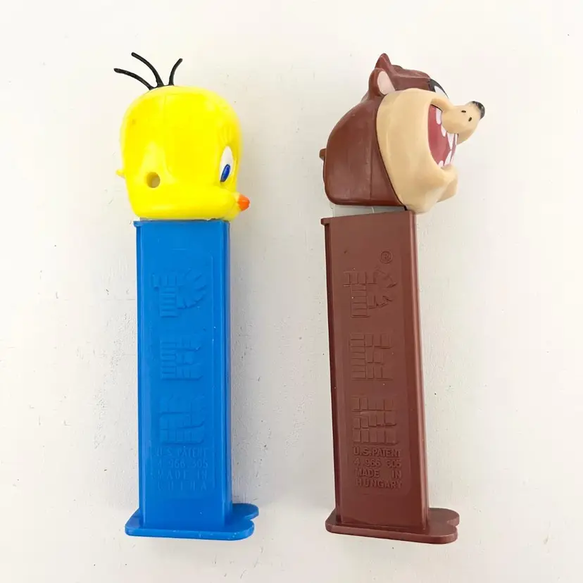 Vintage Pez Candy Dispensers Disney Looney Toons DC Comics Marvel Characters Lot of 18 Most are Retired From the 1980s 1990s The Hello Kitty is 2005 Tweety Bird Unknown Year Santa Claus Older Unknown Year 3 Mickey Mouse With Turned Up Nose Made in Slovenia 4.9 (Red) 2 Mickey Mouse With Straight Nose Made in Hungary 4.9 (Red) 2 Donald Duck Made in Hungary 4.9 (Blue) 1 Daisy Duck Made in Hungary 4.9 (Purple) 1 Goofy Made in Slovenia 5.9 (Red) 1 Pluto Made in Slovenia 4.9 (Red) 1 Tweety Bird Made in China 4.9 (Blue) 1 Tasmanian Devil Made in Hungary 4.9 (Brown) 2 Wonder Woman Made in Slovenia 4.9 (Red) 1 Spider Man Made in Hungary 4.9 (Blue) 1 Santa Claus Made in Yugoslavia 3.9 (Red) 1 Hello Kitty Made in Hungary 7.5 (Red) 1 Star Wars Chewbacca Made in Slovenia 4.9 (Brown) Condition: A little dusty. Could use a good cleaning. All heads snap back easily. The Daisy Duck head seems a little looser as far as snap back. All have been handled and have wear. Measures 4 to 4-1/2 inches Packaged in a rigid box Visit my store to see more vintage ephemera, advertising, novelties, gifts, estate sale and yard sale finds https://district.net/u/finderspickerspaper SKU B1 Bin