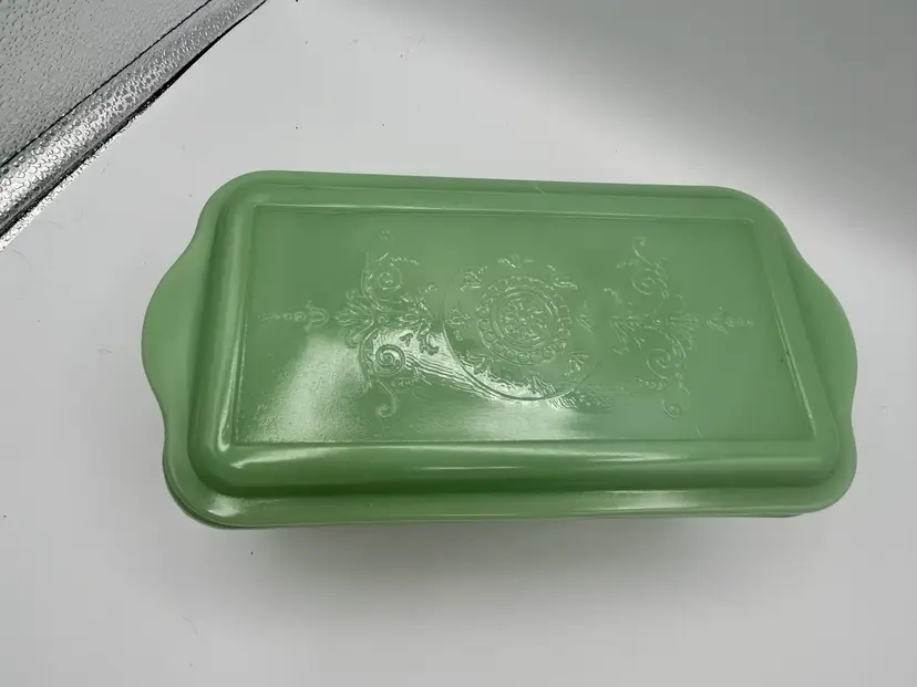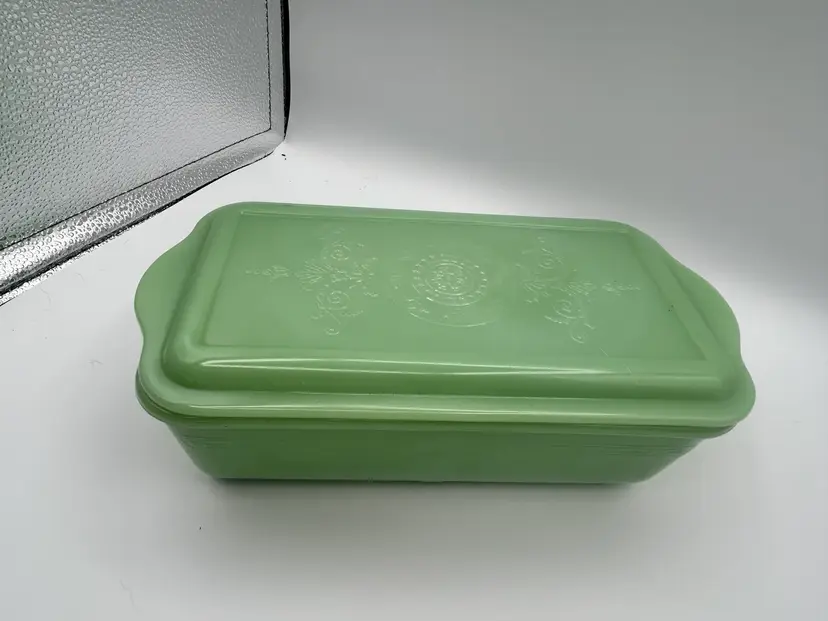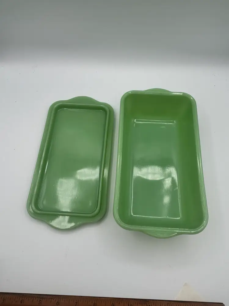 Vintage Philbe Jadeite FireKing Loaf Pan With Lid