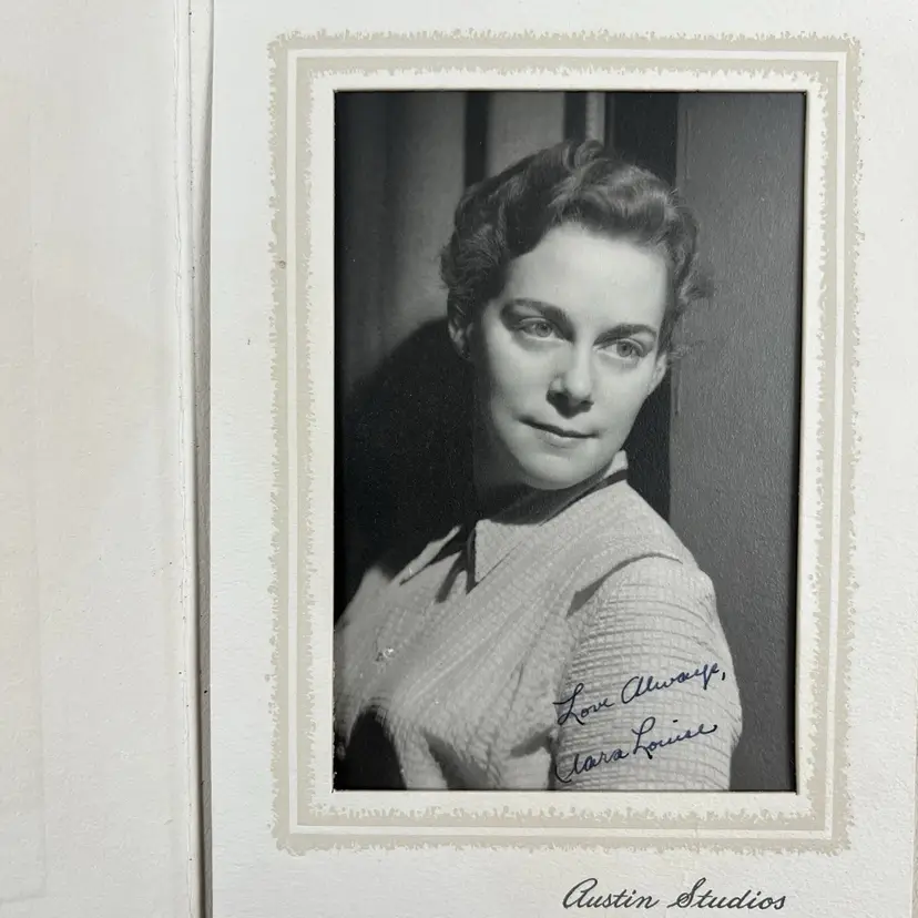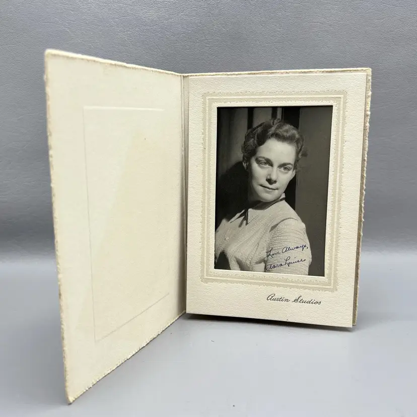 Vintage Photo Female Portrait IDENTIFIED Pretty Woman Light Eyes Austin Studios 5x7" with cardboard frame.