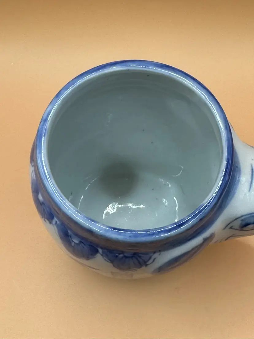 Vintage Pier 1 Imports Good Luck Elephant Porcelain Mug Blue White Trunk Handle