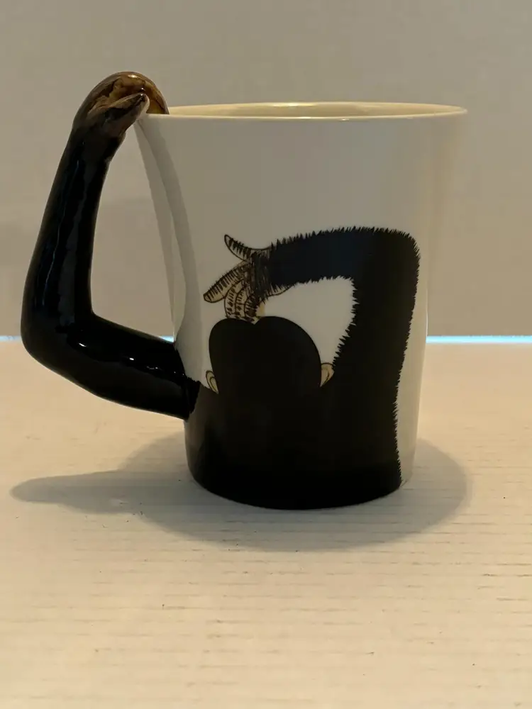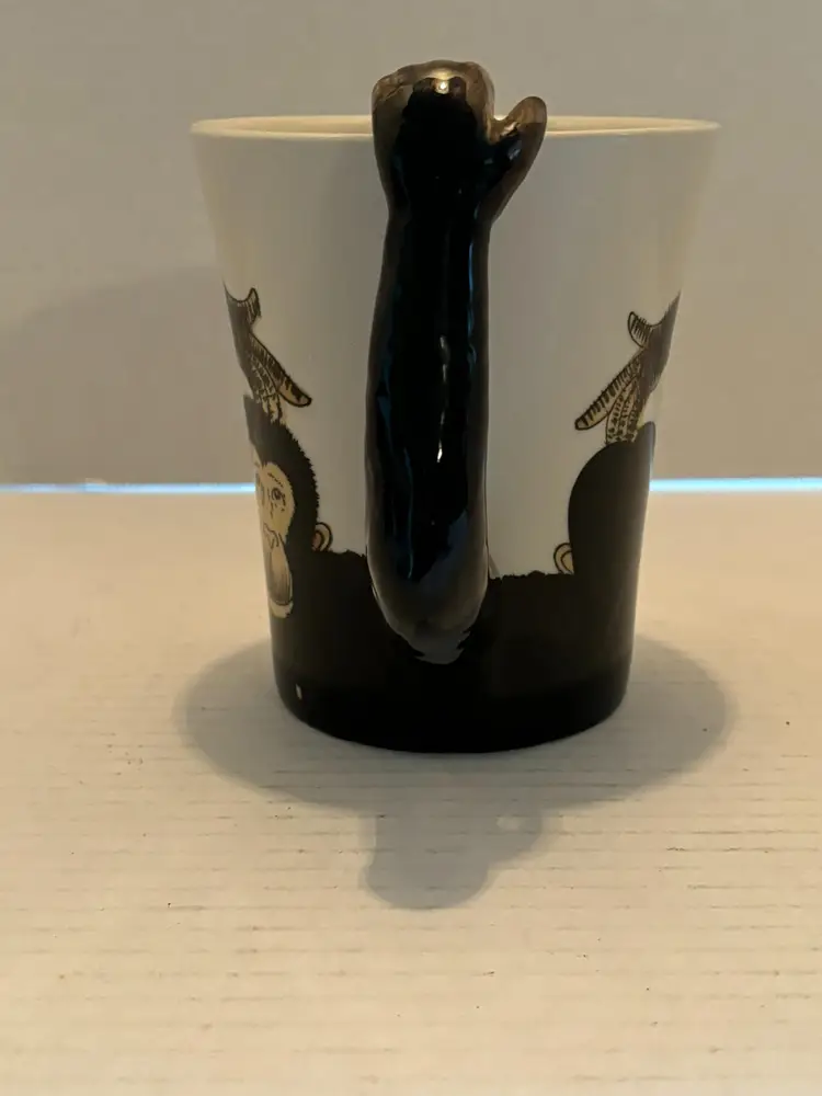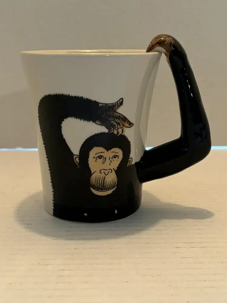 This vintage Pier 1 Imports Monkey Mug is a unique and whimsical addition to any collection. The 3-D anthropomorphic design is sure to catch the eye of any hot or cold beverage enthusiast. Made of ceramic, this original piece is perfect for collectors or anyone who appreciates the quirky charm of monkeys. The multicolor design adds a playful touch to any kitchen or home decor. This original piece was manufactured in China and is perfect for those who love collectibles.