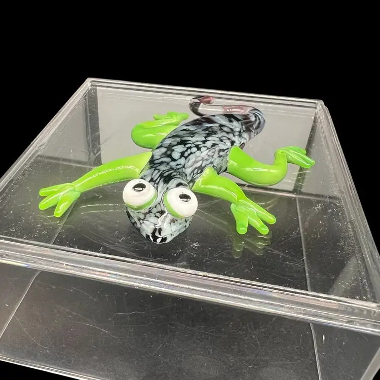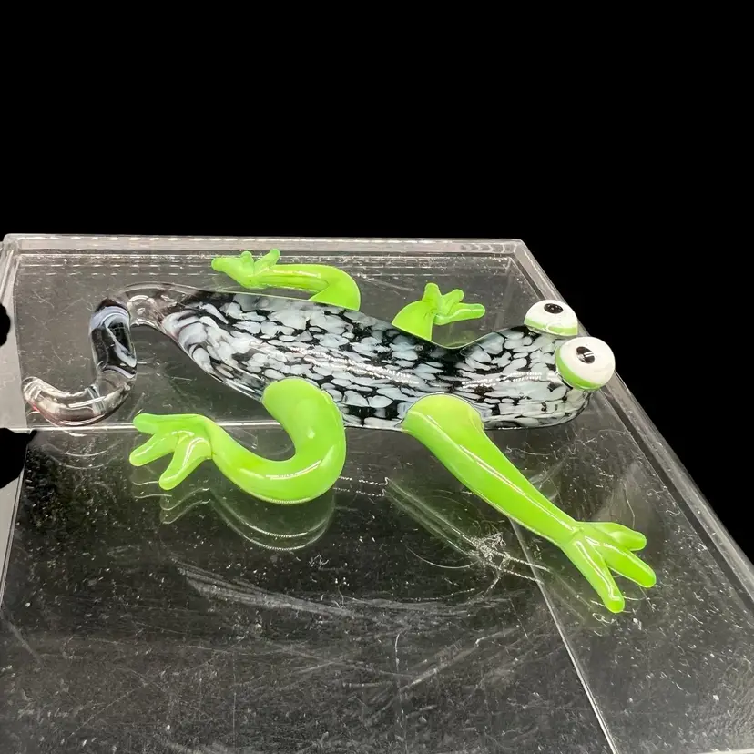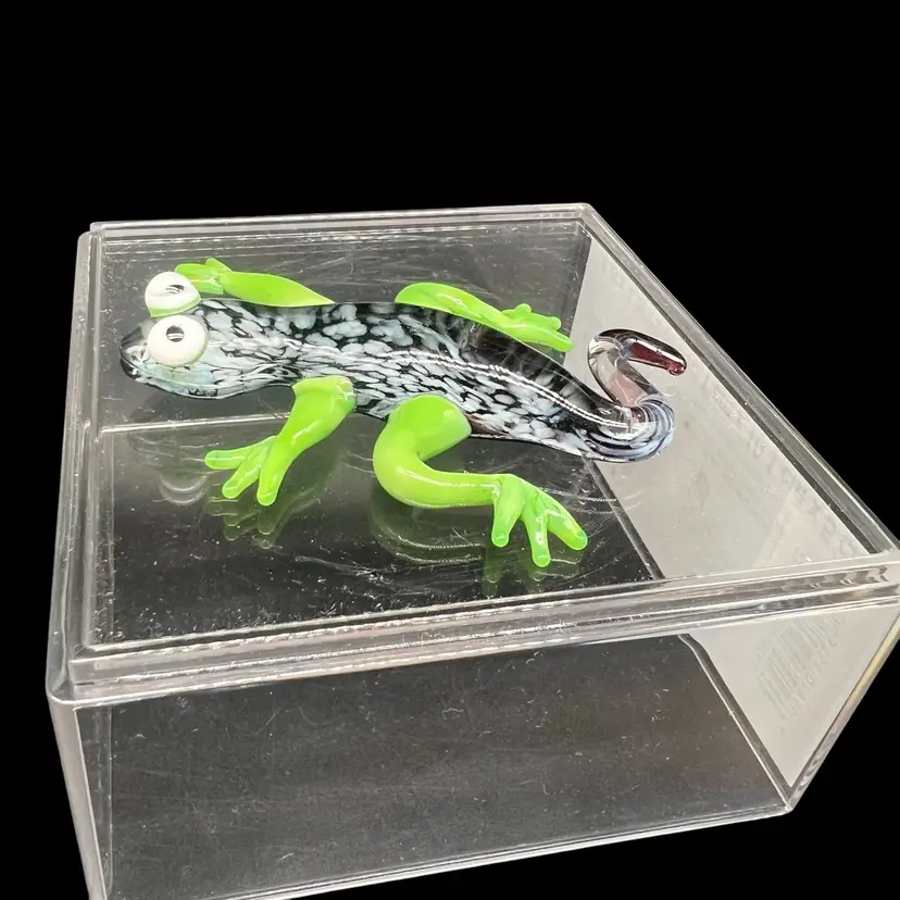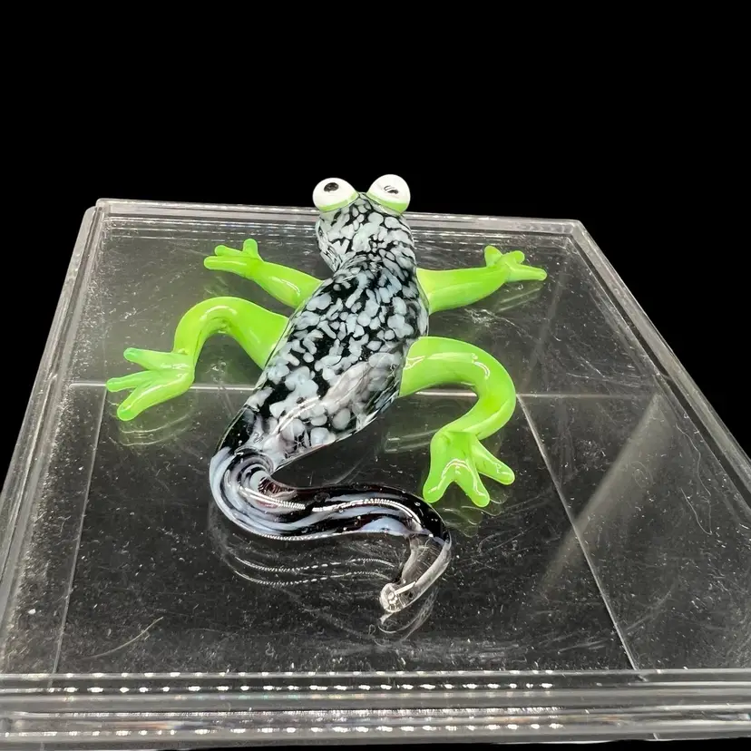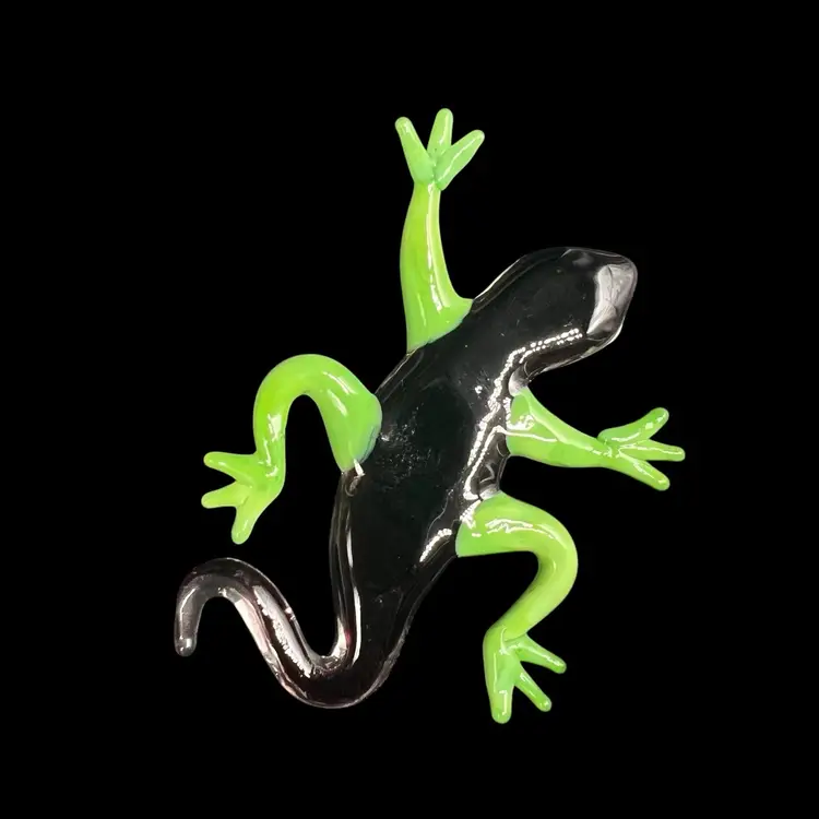 Add a touch of whimsy to your decor with this charming Vintage Pier 1 Art Glass Figurine of a lizard. The handcrafted, glass figurine showcases the intricate detail and vibrant colors that Pier 1 is known for. The figurine features a multicolored, speckled pattern and has a 3D effect that makes it appear almost lifelike.