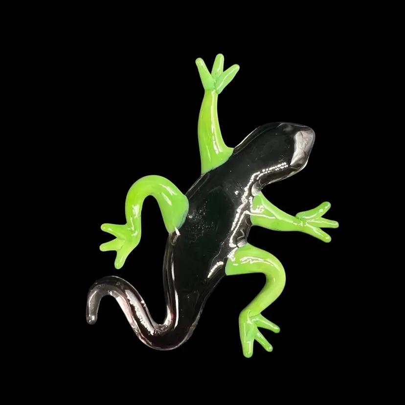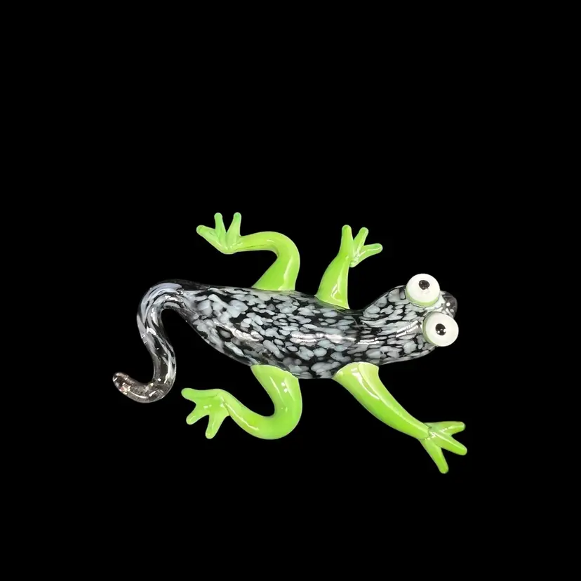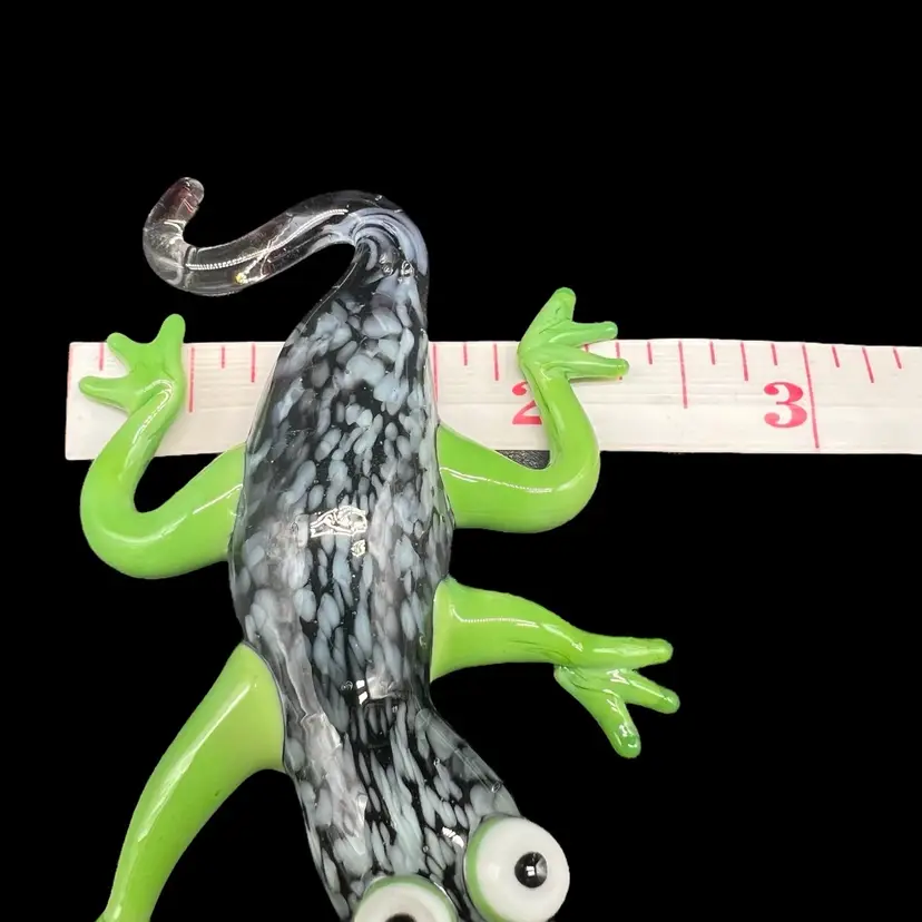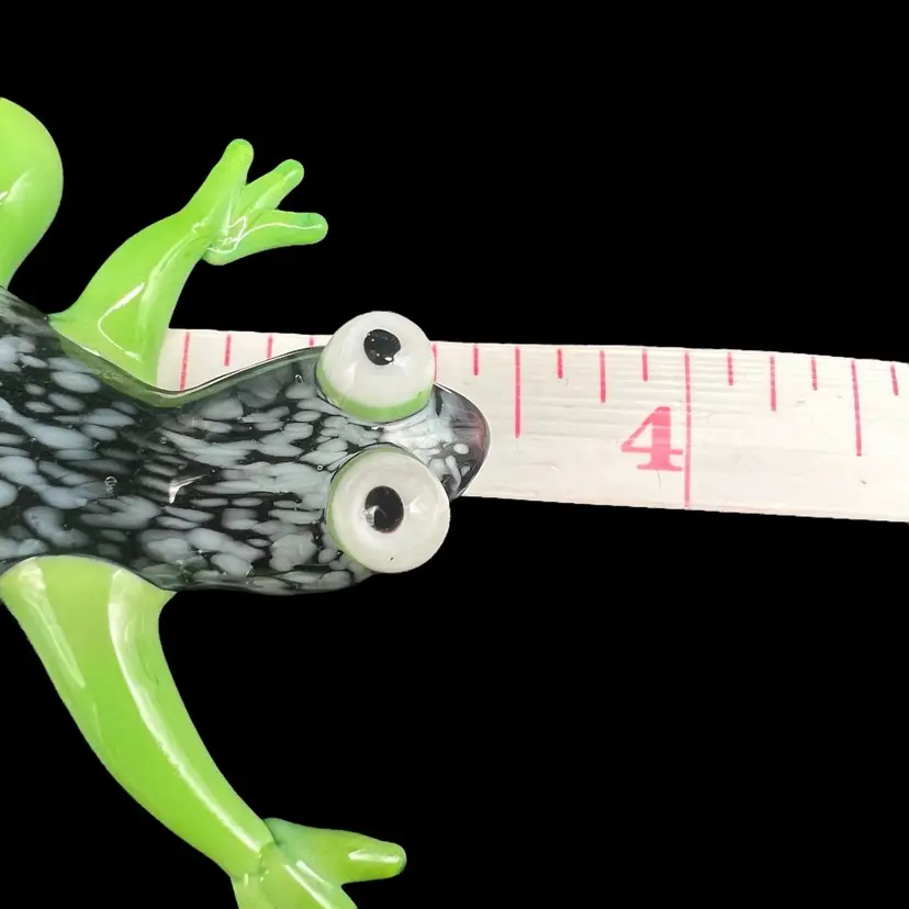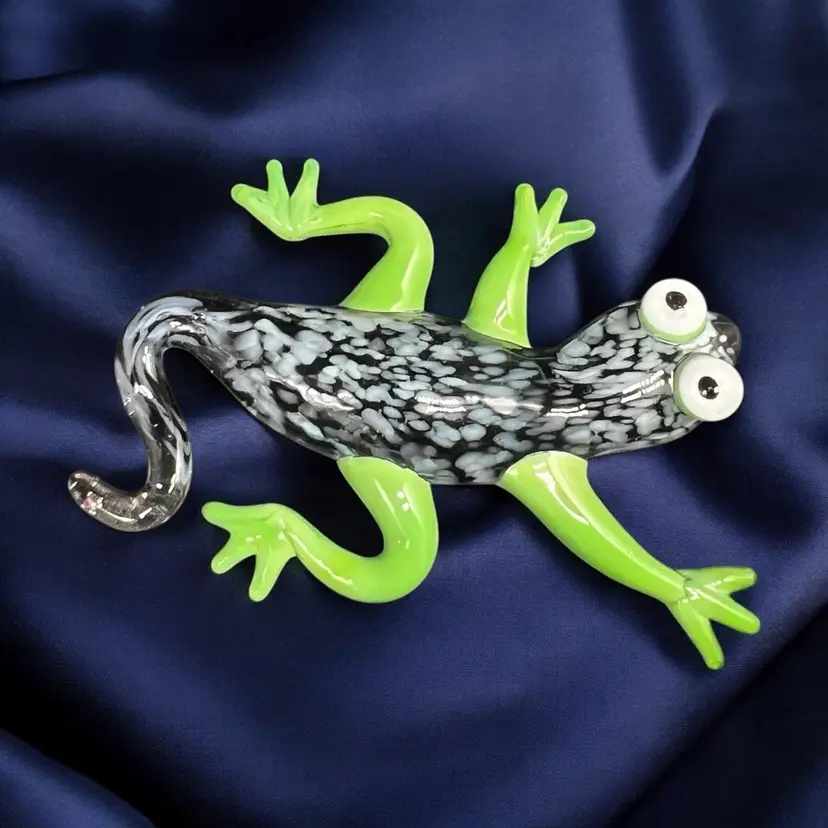 Add a touch of whimsy to your decor with this charming Vintage Pier 1 Art Glass Figurine of a lizard. The handcrafted, glass figurine showcases the intricate detail and vibrant colors that Pier 1 is known for. The figurine features a multicolored, speckled pattern and has a 3D effect that makes it appear almost lifelike.