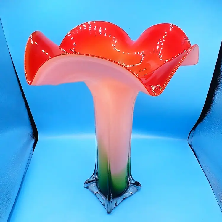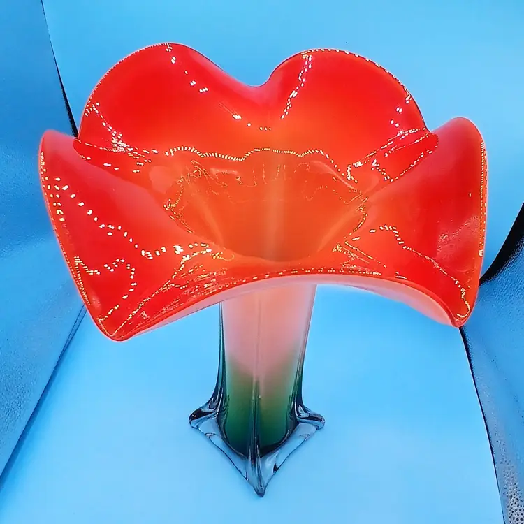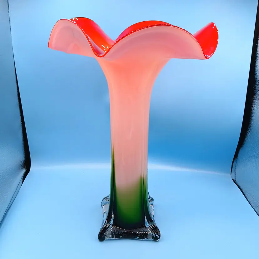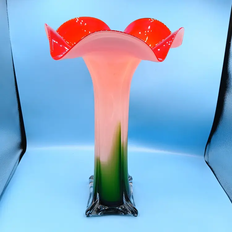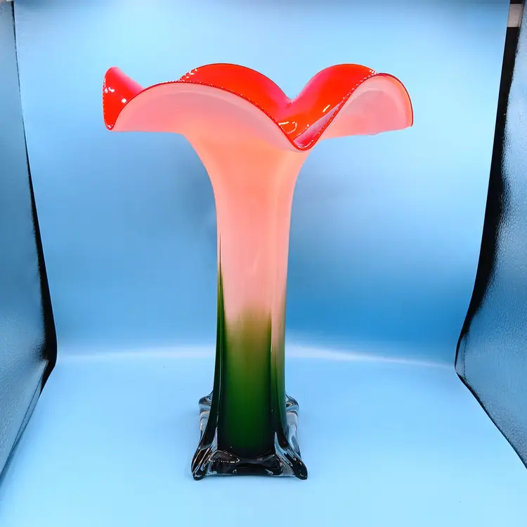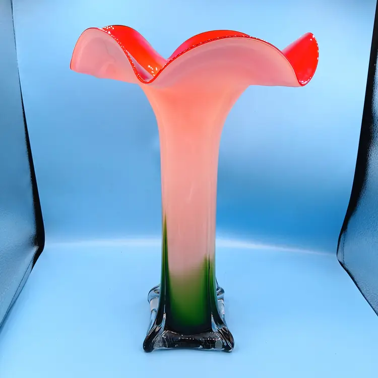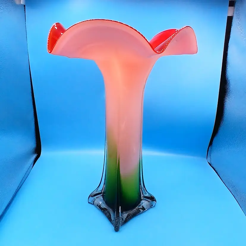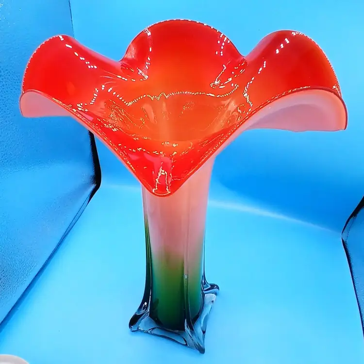 No damage to this stunning floral vase. It measures slightly over 14" tall and 9" in diameter at the top. I believe it's made in Italy but it was not marked. I've also seen it listed as being from the 60's but I doubt that. This piece is a standout on it's own, so vibrant. It's as a flower in full bloom, year 'round before any flowers are added. Very cheerful for the coming winter months. Thanks for looking!