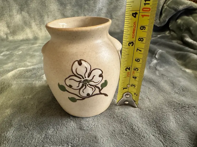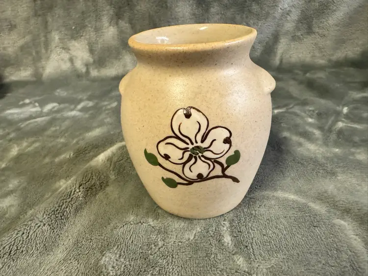 Elevate your home decor with this exquisite Vintage Pigeon Forge Pottery Bud Vase. Handcrafted with care, the vase features a beautiful hand-painted Dogwood Floral pattern that exudes a serene, natural aesthetic. The soothing beige matte finish complements the Arts & Crafts/Mission Style design, making it a perfect addition to any room.