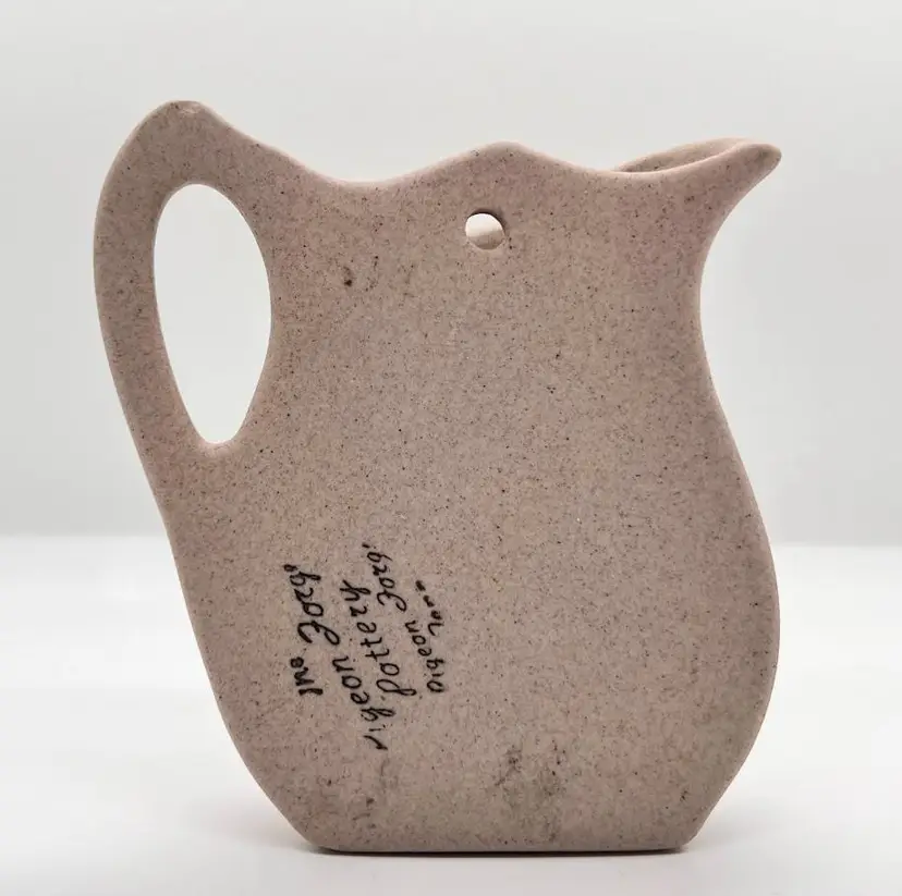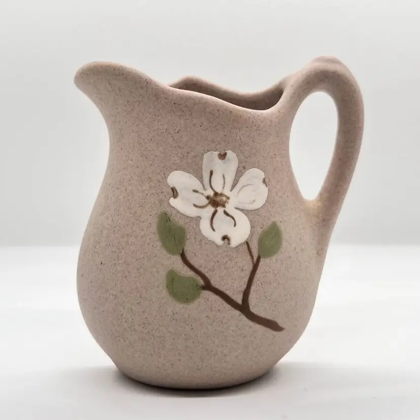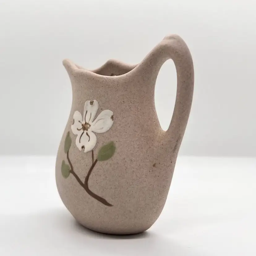 This charming vintage stoneware pitcher features a delicate hand-painted floral design. Perfect for small plates or stand alone wall decor, it adds a touch of rustic elegance to any home. 4" Tall x 4" Wide x 1" Thick