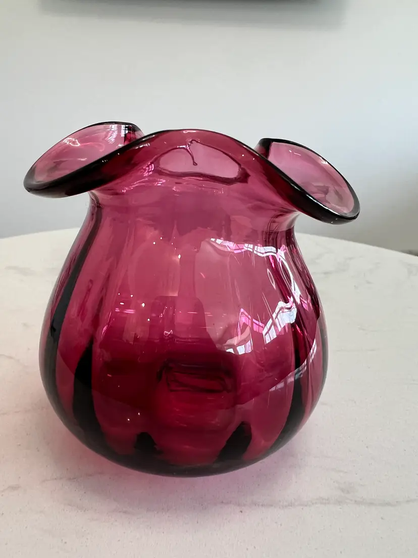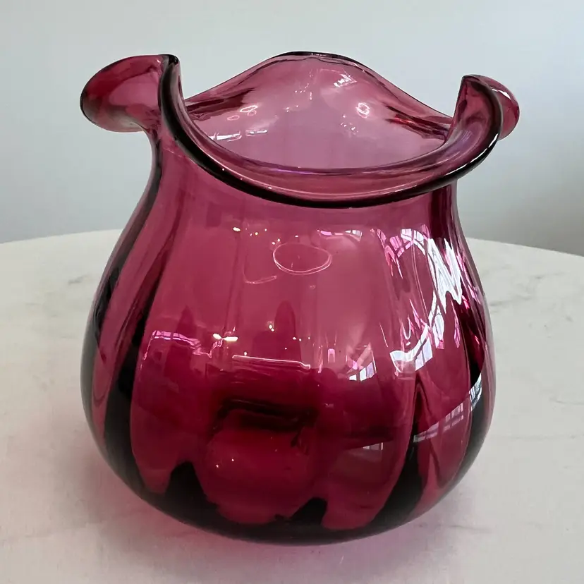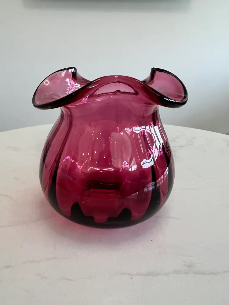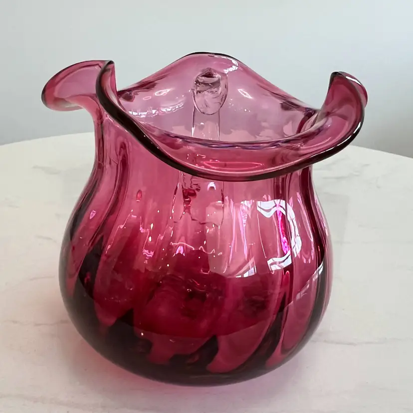 Keywords: Art Glass, Handblown, Fenton Style, Cottagecore, Grandmillennial, Pink Decor, Table Scape, Collectible Glass, West Virginia Glass, MCM Decor, Gift Idea