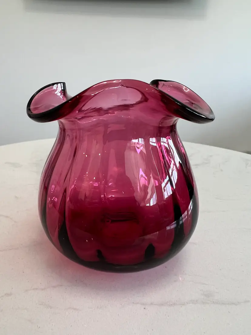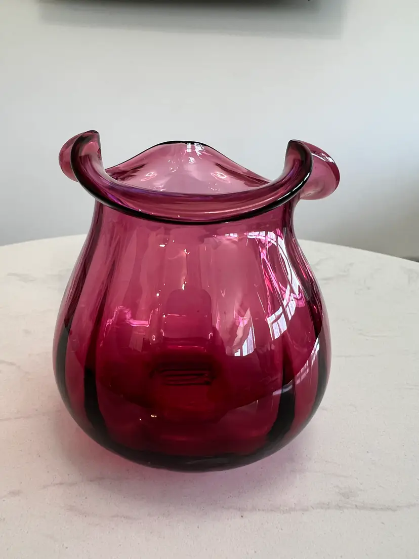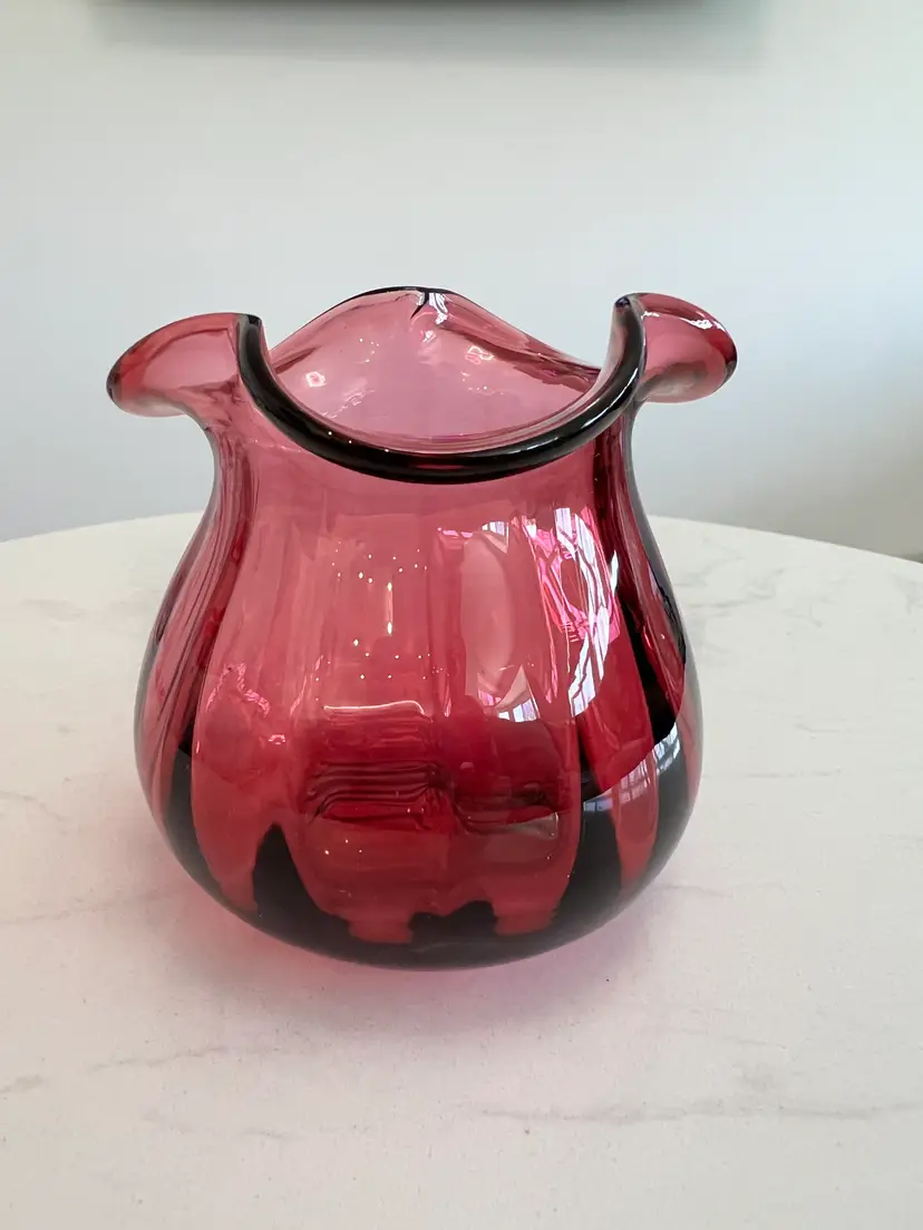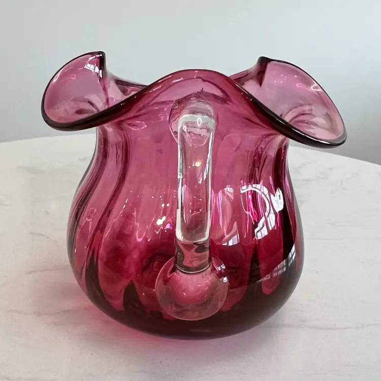 Keywords: Art Glass, Handblown, Fenton Style, Cottagecore, Grandmillennial, Pink Decor, Table Scape, Collectible Glass, West Virginia Glass, MCM Decor, Gift Idea