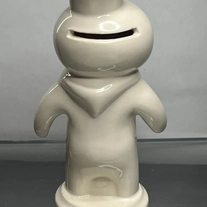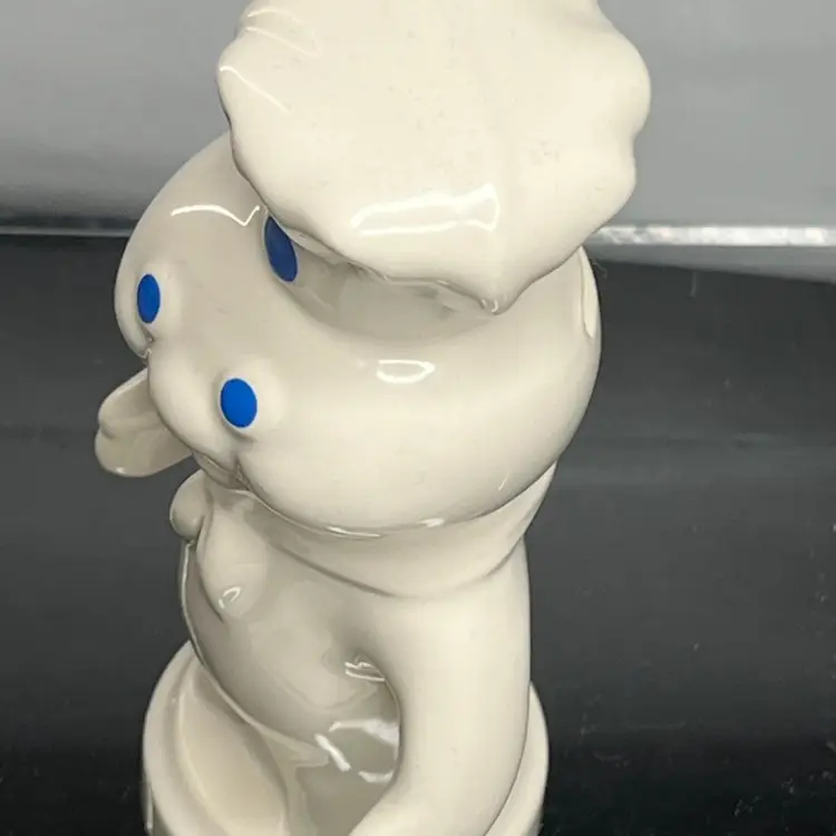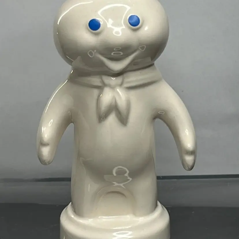 A cute 8" tall coin bank with original red stopper of the cute Pillsbury Doughboy.