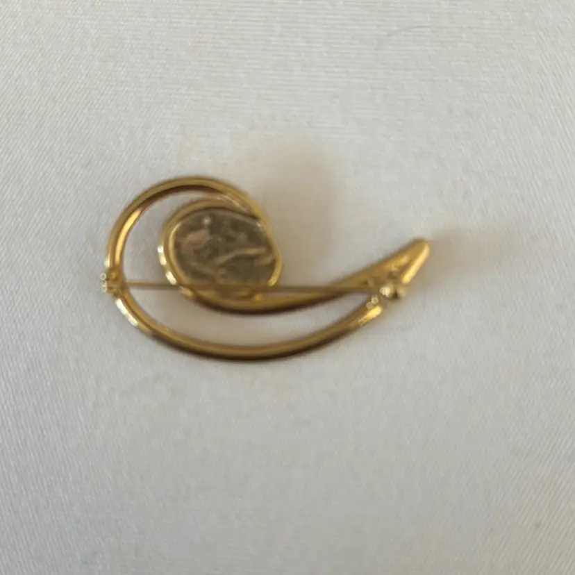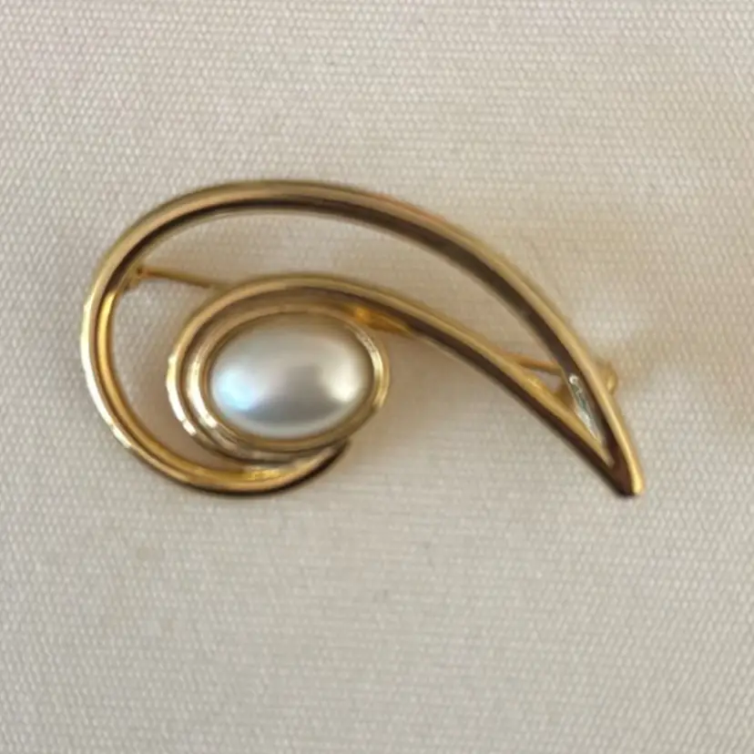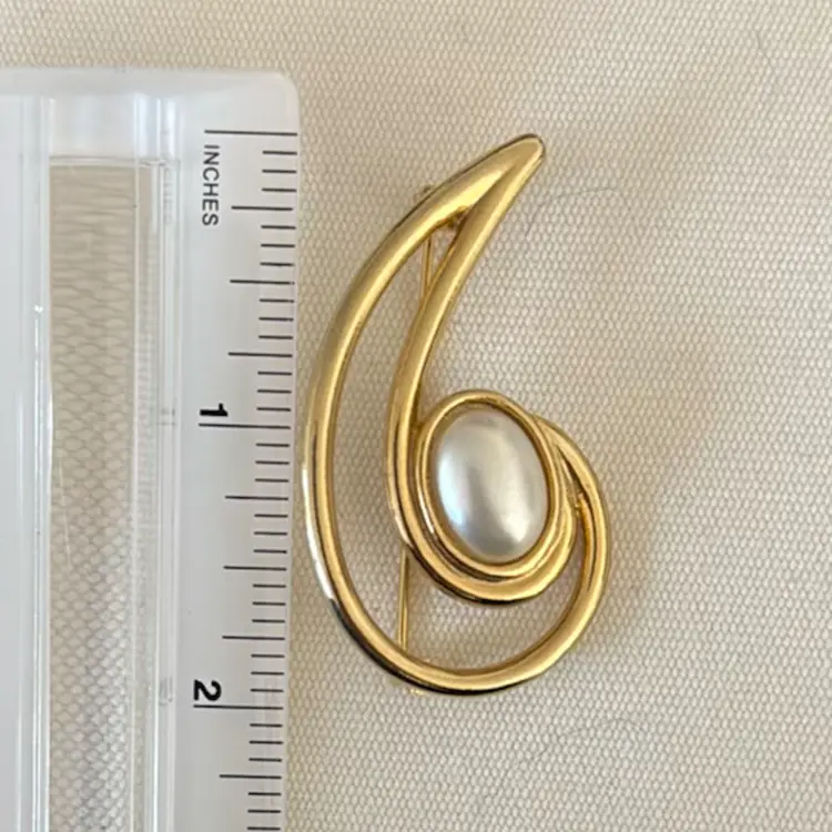 Vintage Pin Brooch Gold Toned Curled Design With White Faux Pear
