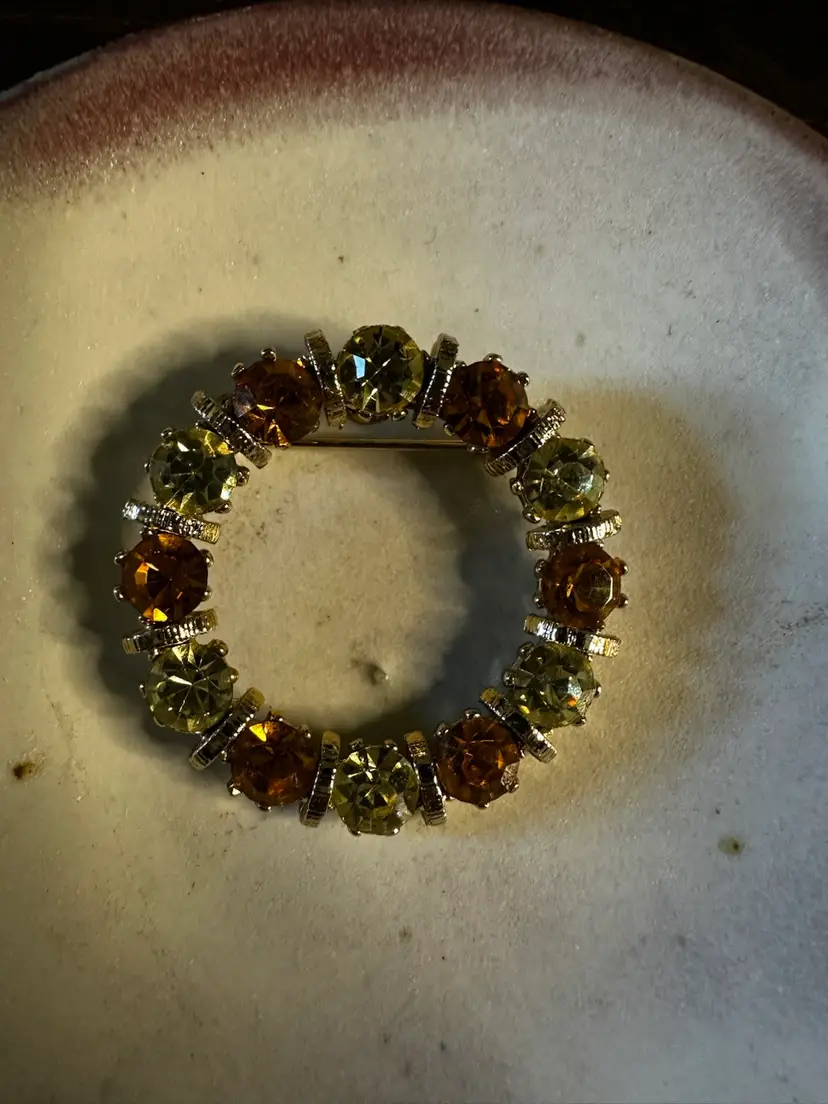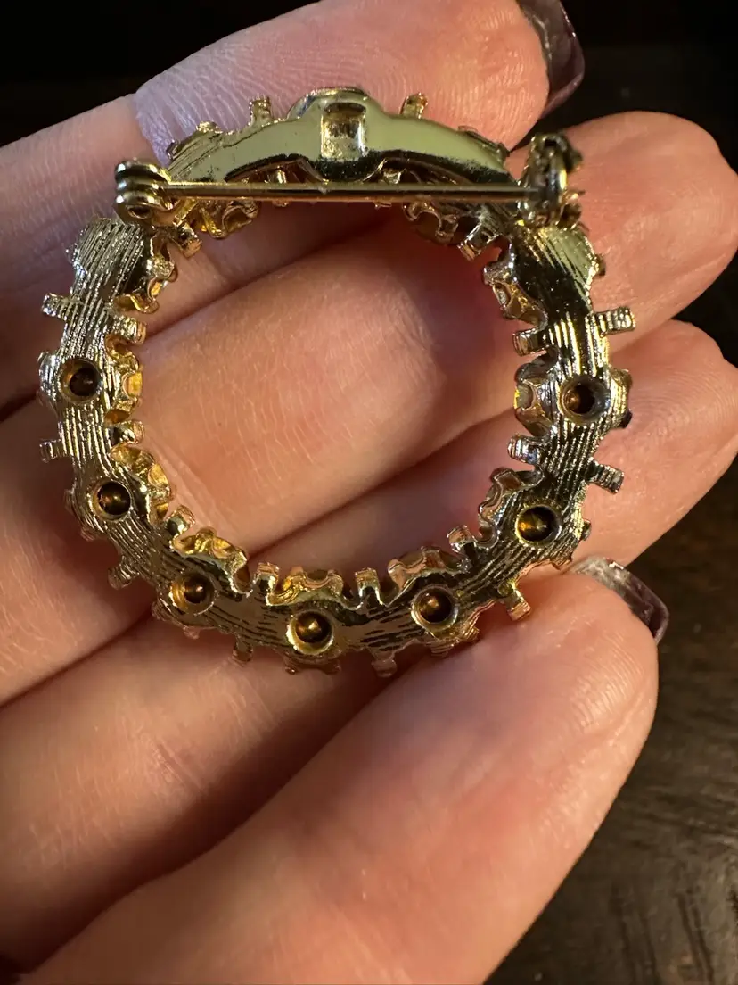 Vintage Pin Rhinestone Brown Circle Pin