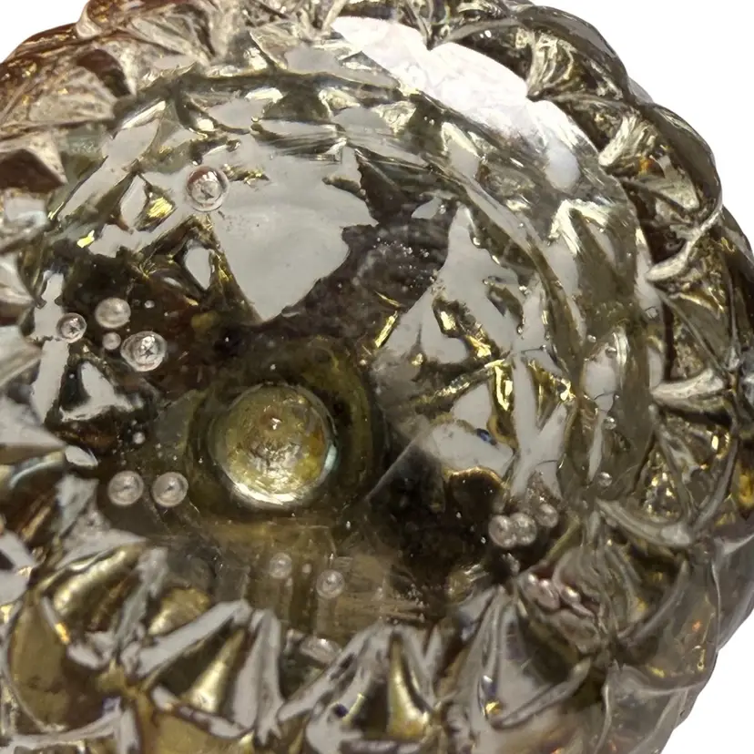 Add a touch of tropical paradise to your desk/home with this stunning glass paperweight. Crafted in the late 20th century, this vintage original features a clear glass finish and a glossy texture. The mid-century modern style and decorative theme make it a perfect addition to any collection. Condition: Very light surface scratches on base. No other condition issues noted. Measurements are good appropriate. Please see pictures for condition and measurements as they are a part of the description. Thank you for looking!
