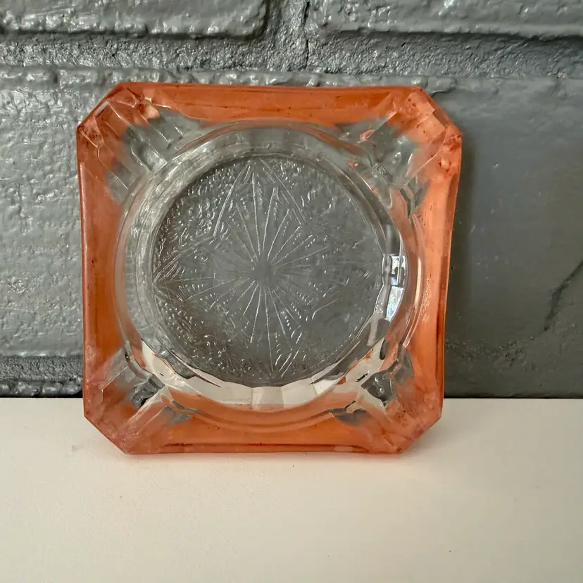Vintage Pink Adam Depression Glass Squared Ashtray Pre-owned