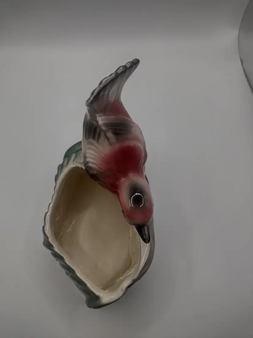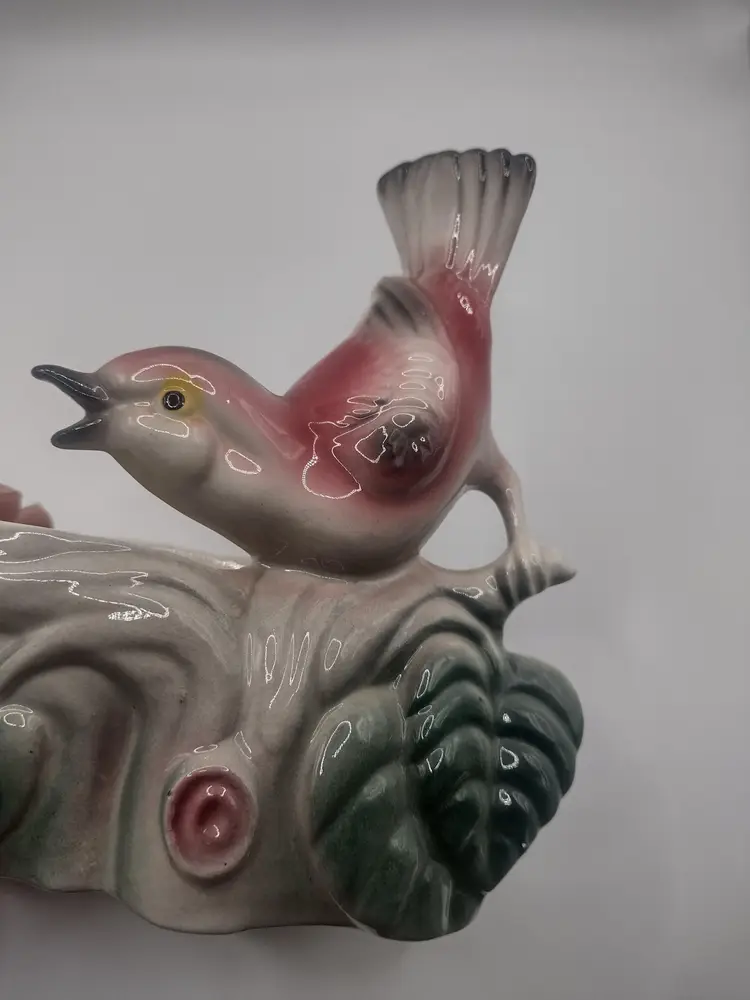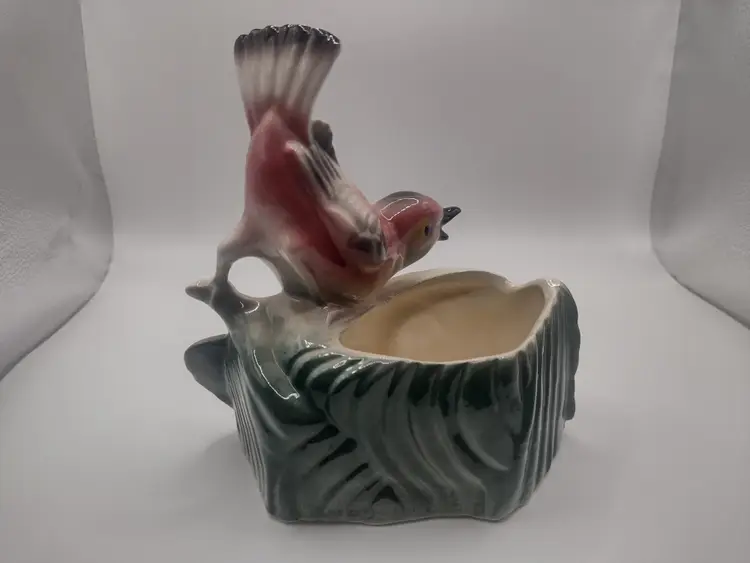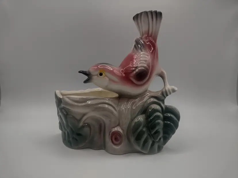 Charming vintage planter featuring a pink bird perched on a tree stump. Perfect for adding a touch of nature-inspired decor to your home or garden. The original Angry Bird? It does look fabulously cranky!