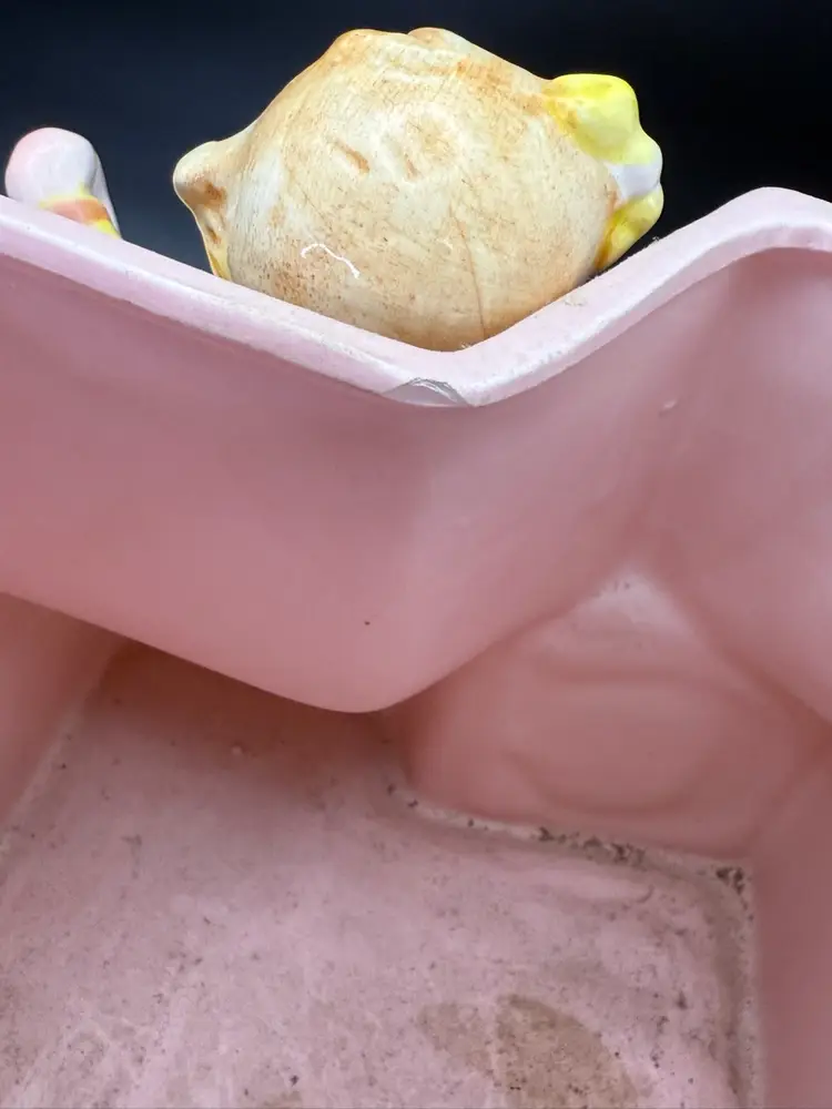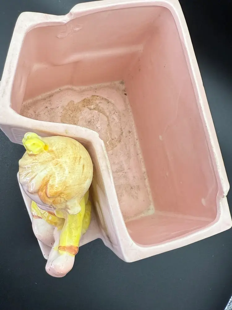 This is a cutie does have a chip on the inside. 12 cm tall 11 x 14 cm