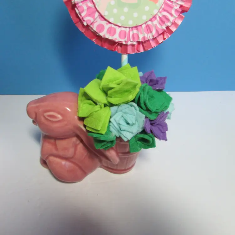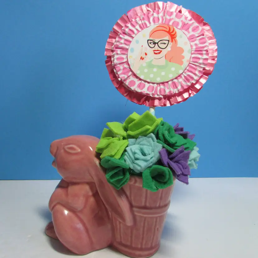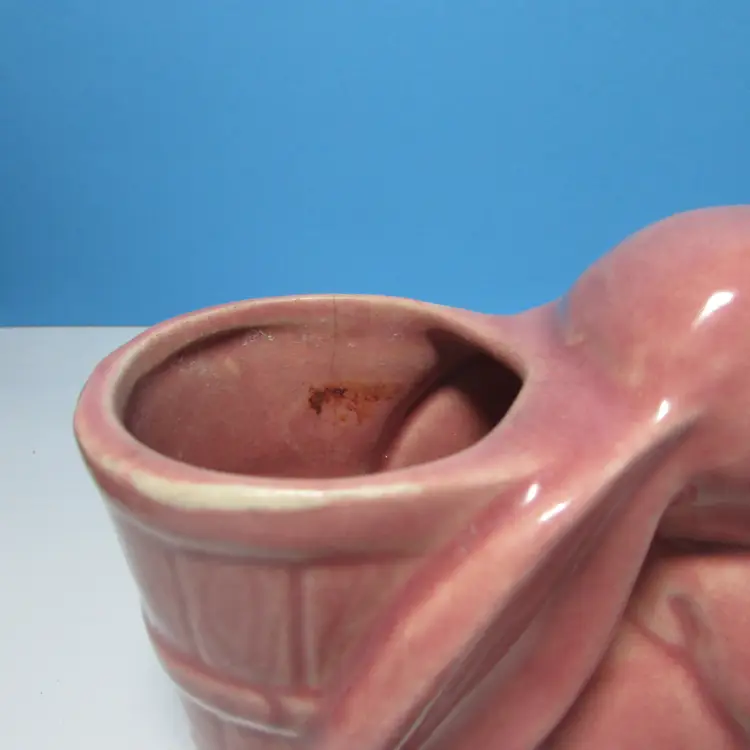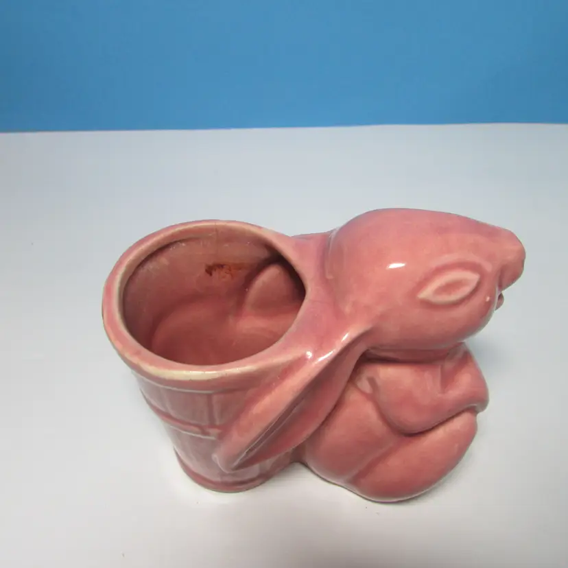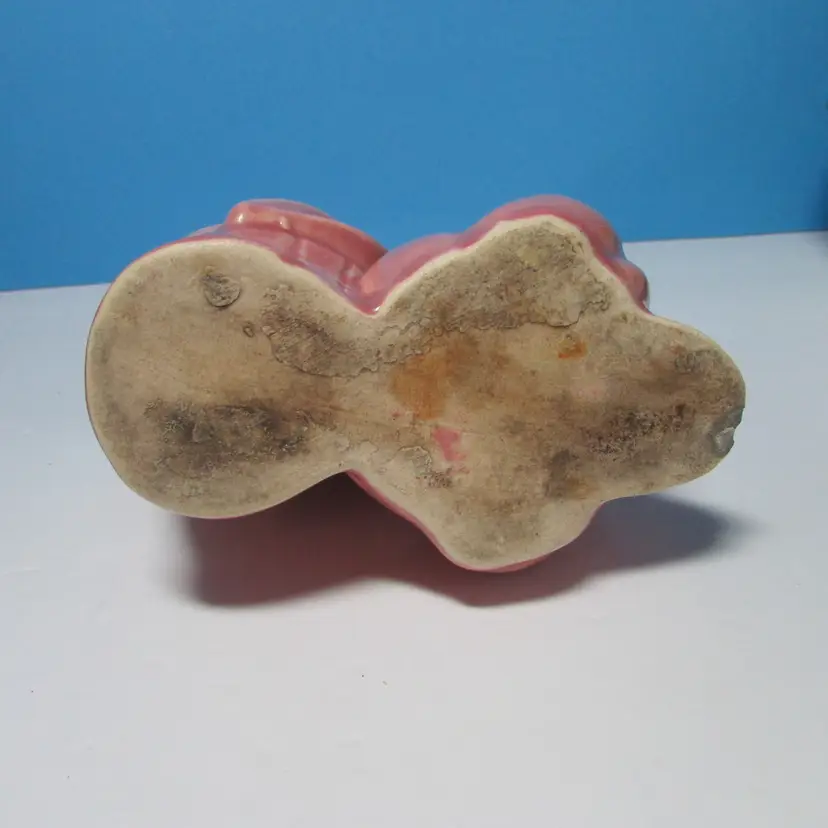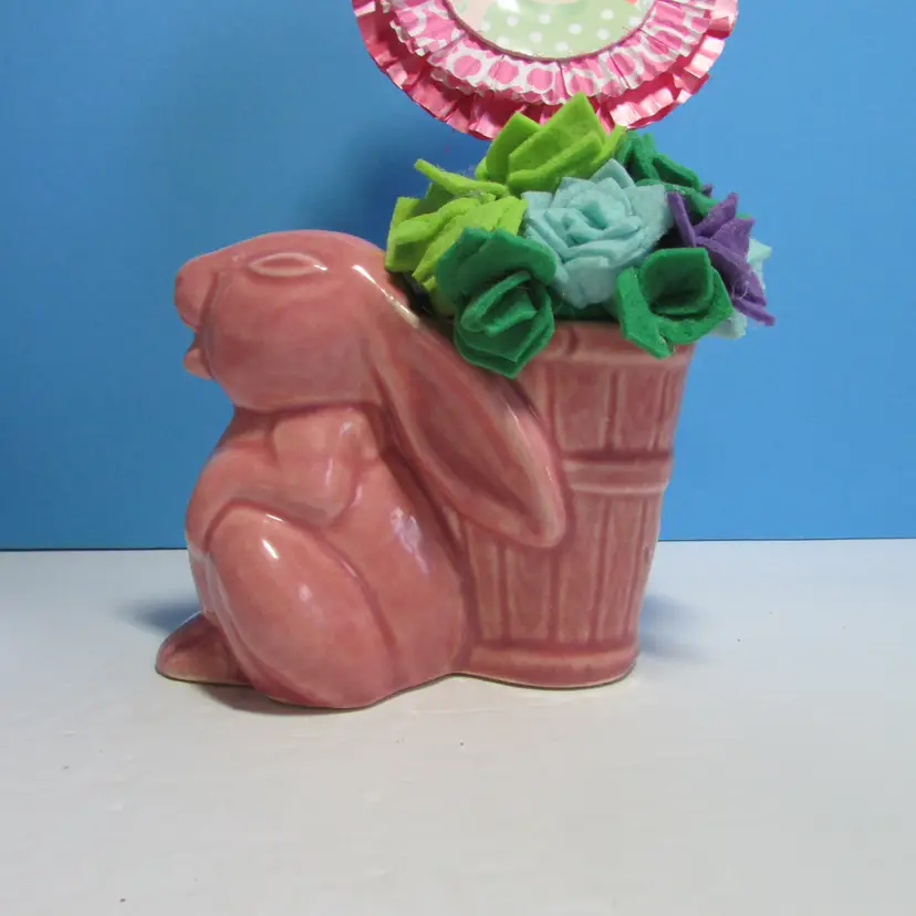 This lovely planter has some wear, there is a chip on the foot what we filled in the clay, still nice to use and display. I added some felt succulents, it is not glued into the planter. The planter is about 4" x 5" x 3". This is shipped from a smoke free home. Thanks for looking!