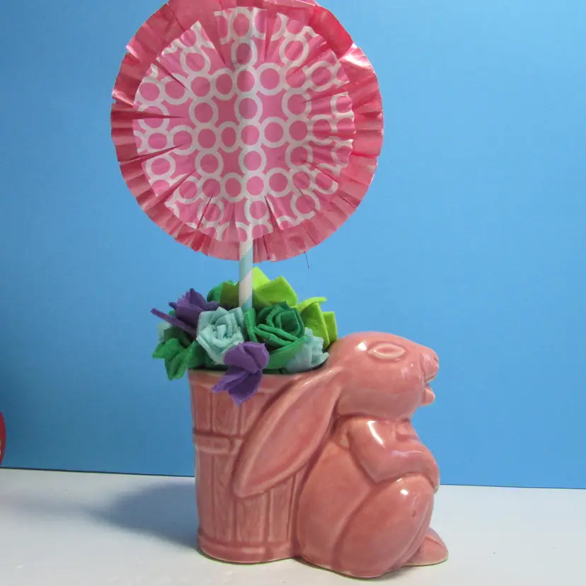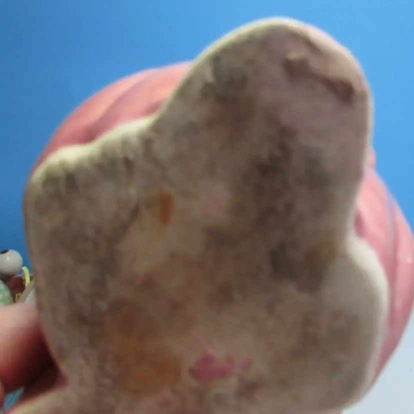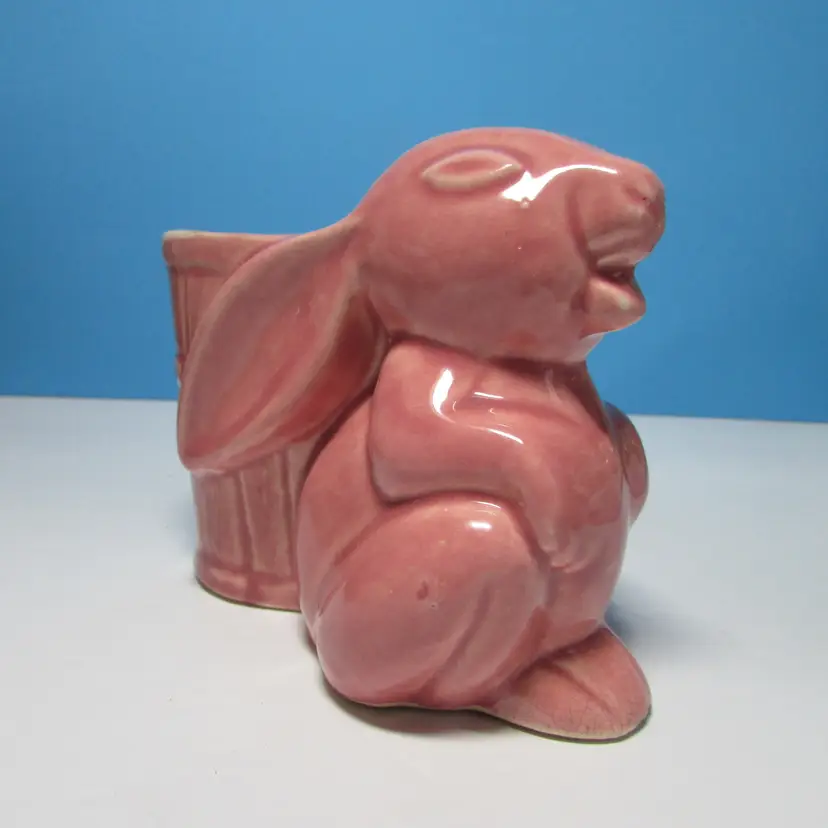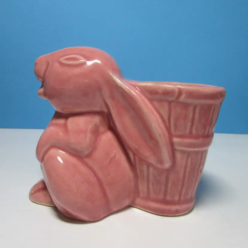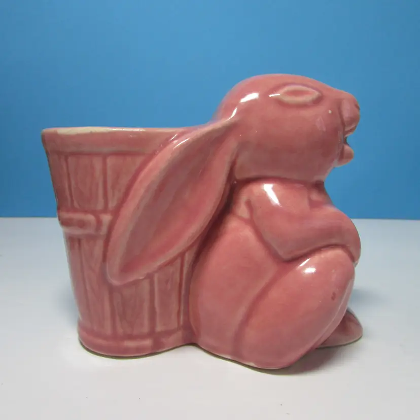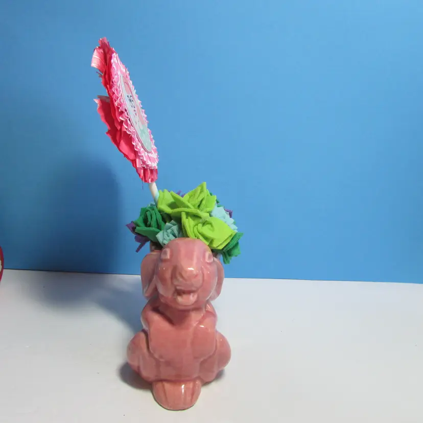 This lovely planter has some wear, there is a chip on the foot what we filled in the clay, still nice to use and display. I added some felt succulents, it is not glued into the planter. The planter is about 4" x 5" x 3". This is shipped from a smoke free home. Thanks for looking!