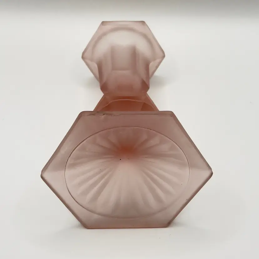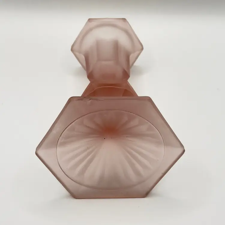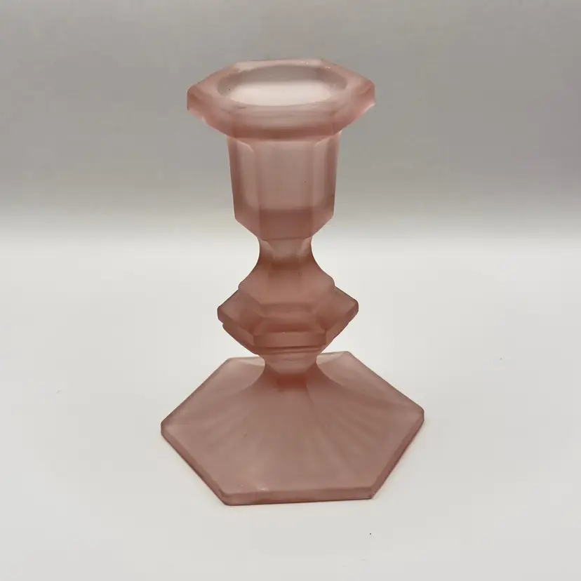 Add a touch of elegance to your home with this vintage pink Depression glass candle holder. Its soft pink hue and geometric design make it a charming accent piece for any room. Perfect for collectors or as a thoughtful gift. Good condition with no cracks, one small flea bite (see pic). Measures 3.5x5x2. Weighs 1lb.