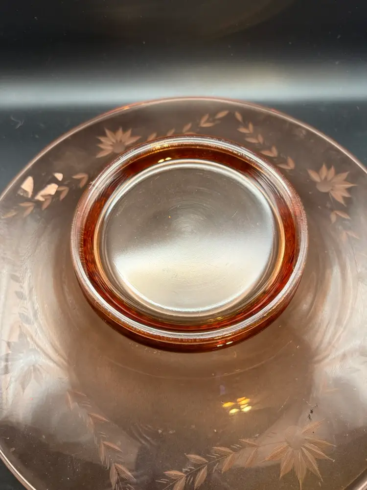 Depression glass was mass-produced, inexpensive glassware made in the United States and Canada from 1929 to 1939, during the Great Depression. The glassware was often given away as a free gift with purchases of other items. Pink is considered one of the most valued colors for Depression glass.