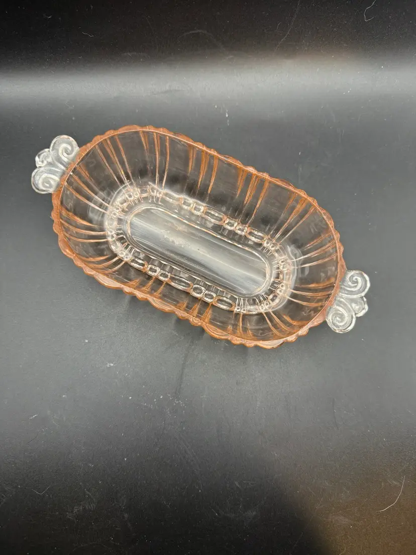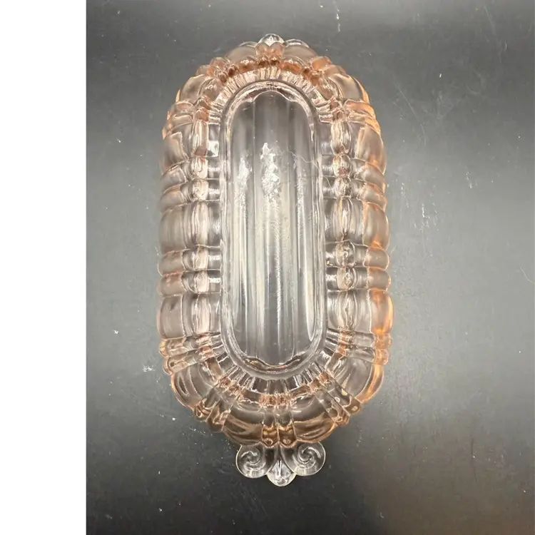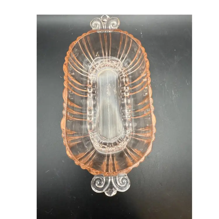Anchor Hocking Glass Corporation, a major American glassware manufacturer, was one of the most prolific producers of depression glass. They produced numerous patterns, including the ribbed oval shape seen here, which was commonly used for serving dishes like relish trays, candy dishes, and small casseroles.