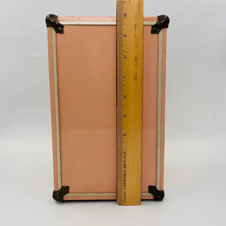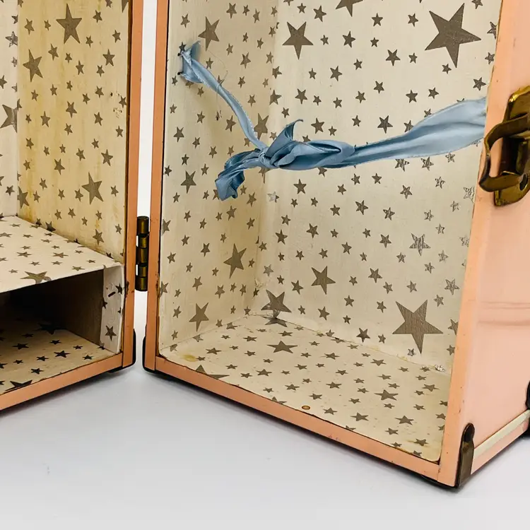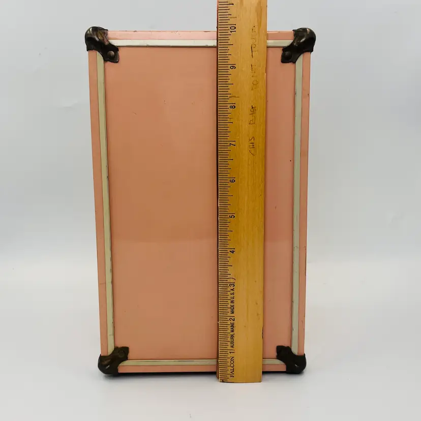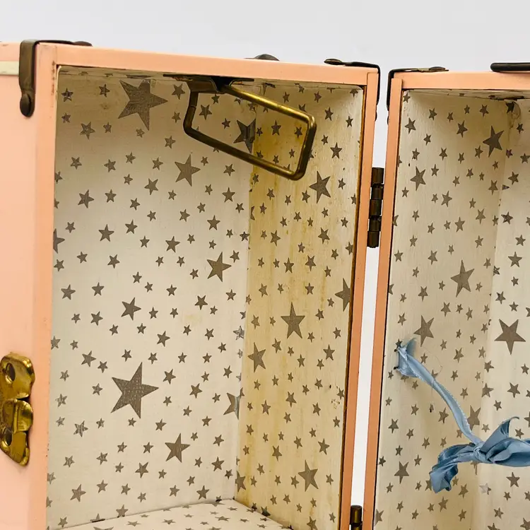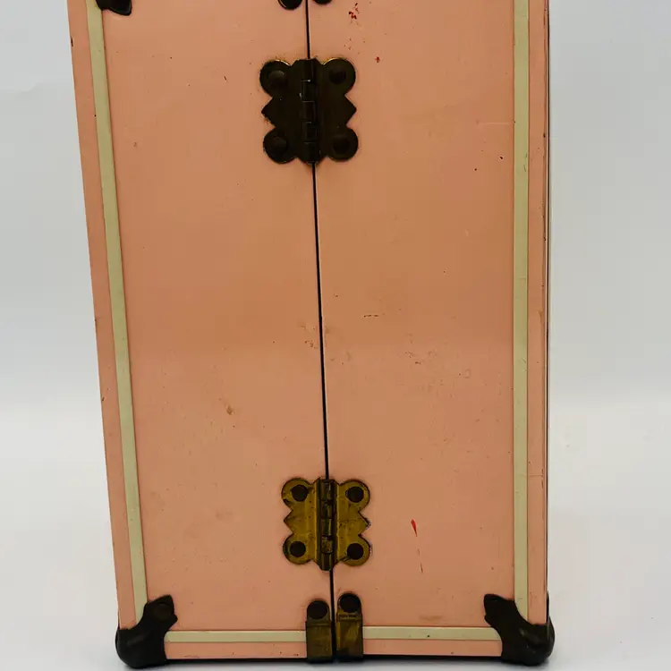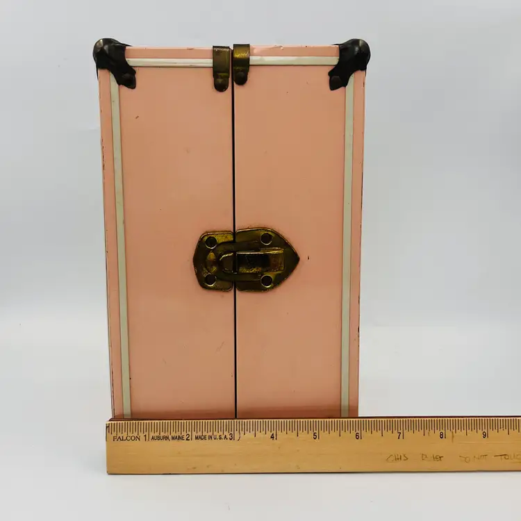 Charming and fun decor for your doll collection Measures:10"x6" It's clean and we find no dents - There would have been a drawer in it that is no longer there.