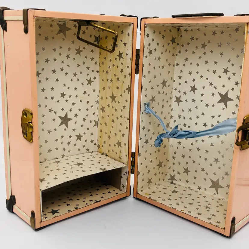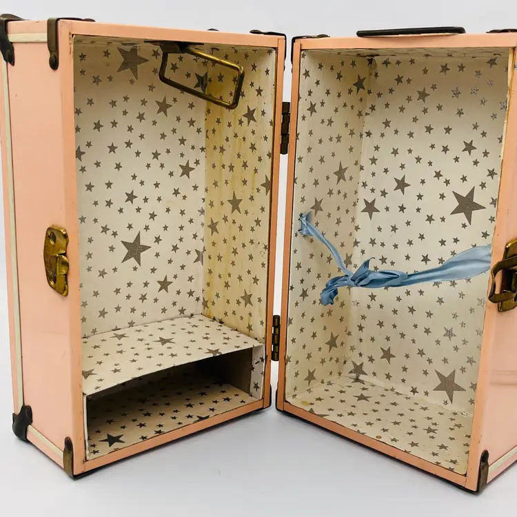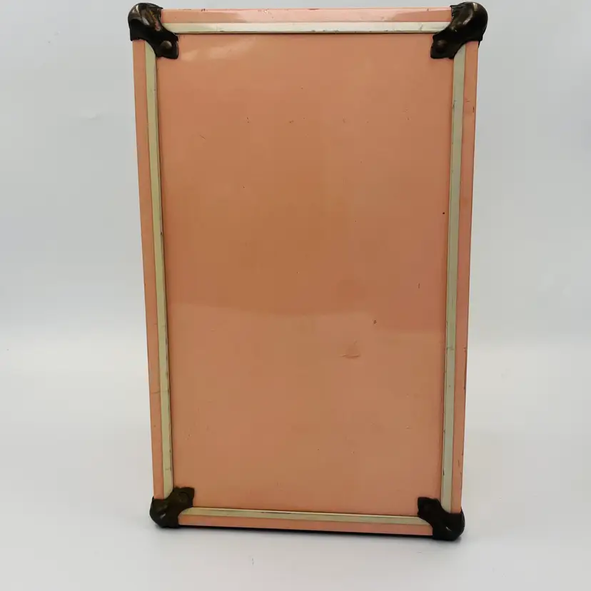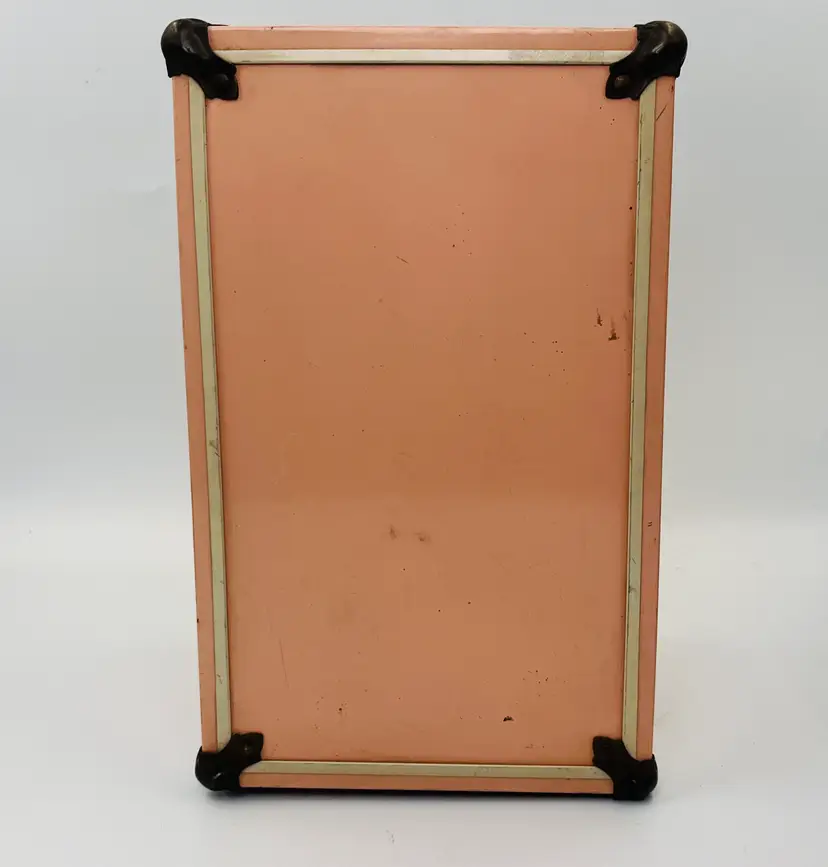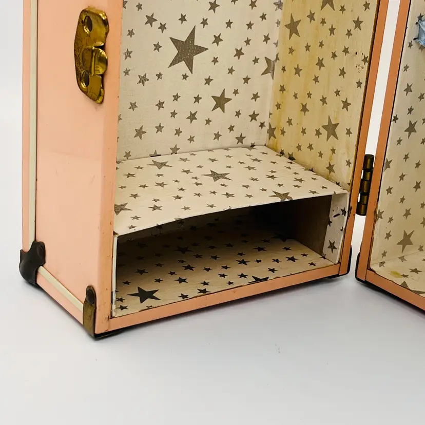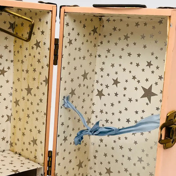 Charming and fun decor for your doll collection Measures:10"x6" It's clean and we find no dents - There would have been a drawer in it that is no longer there.