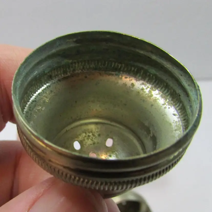 This lovely set has some wear on the lids, one has some wear inside. Still a lovely set to display, each is about 4" x 1 1/2" x 1 1/2. This is shipped from a smoke free home. Thanks for looking! locbbp-b