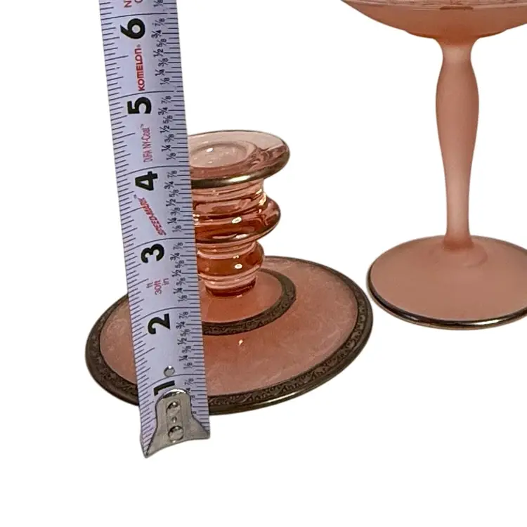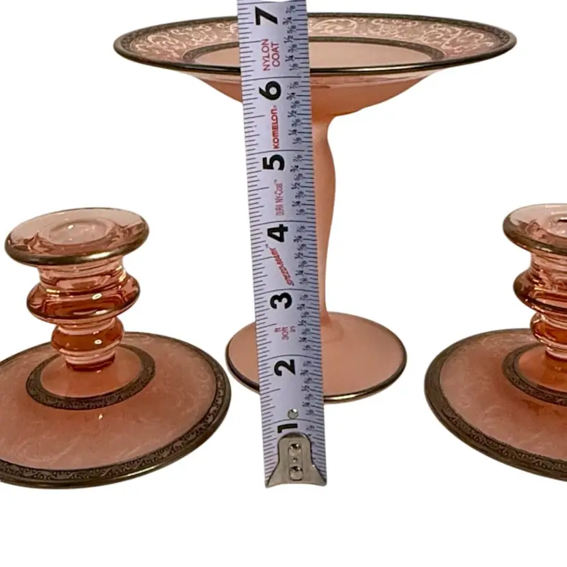 This beautiful pink glass compote and candle holders are a must-have for any collector of elegant glass.
