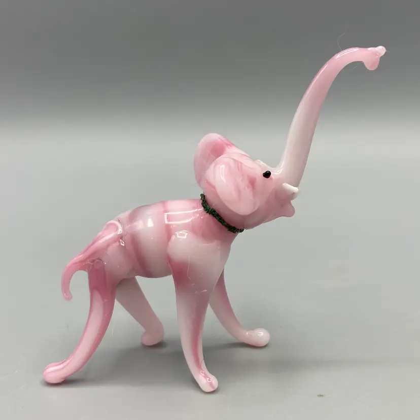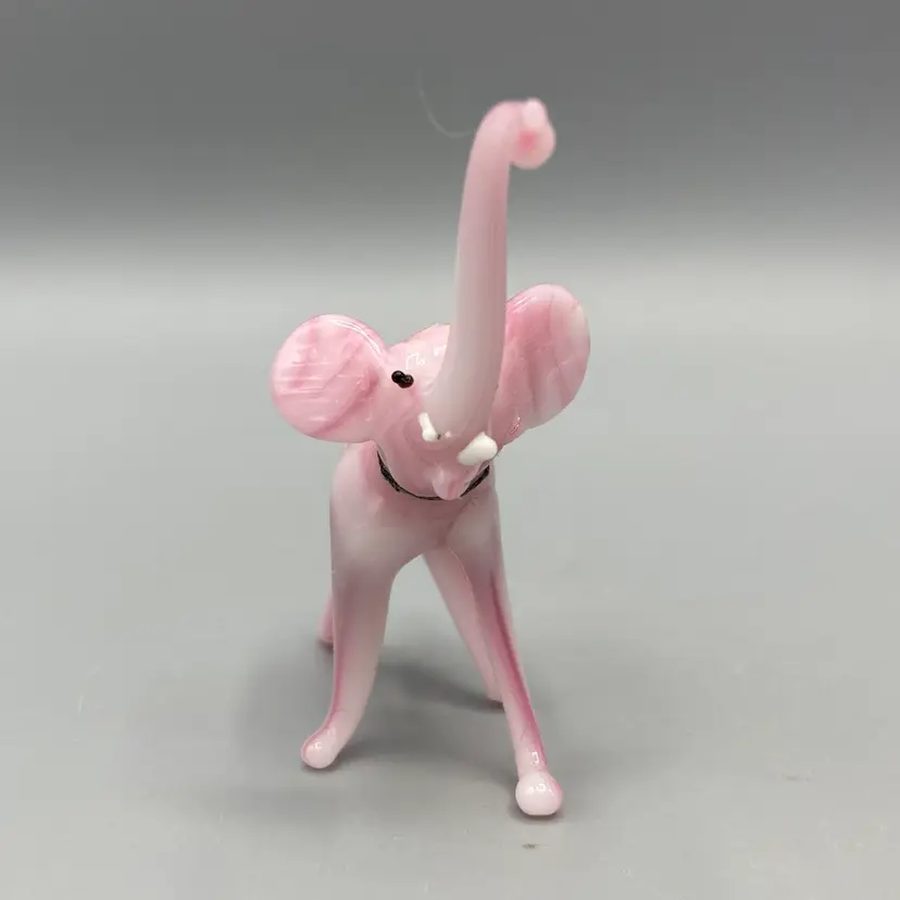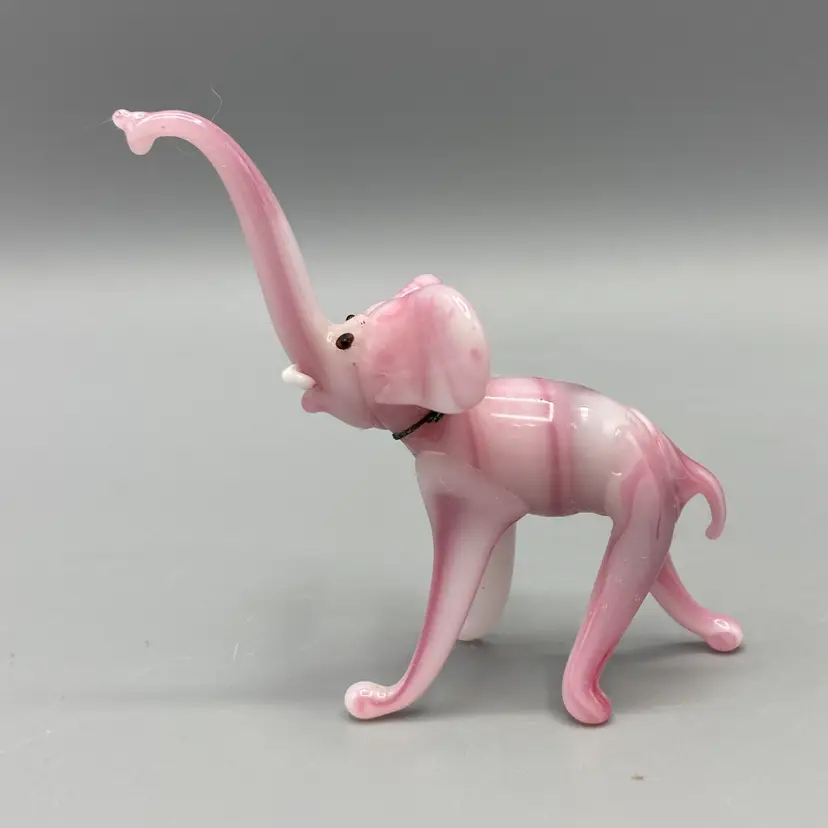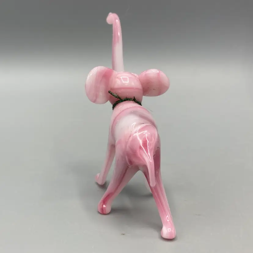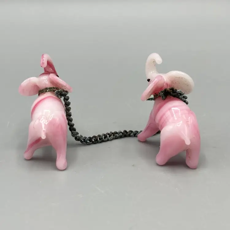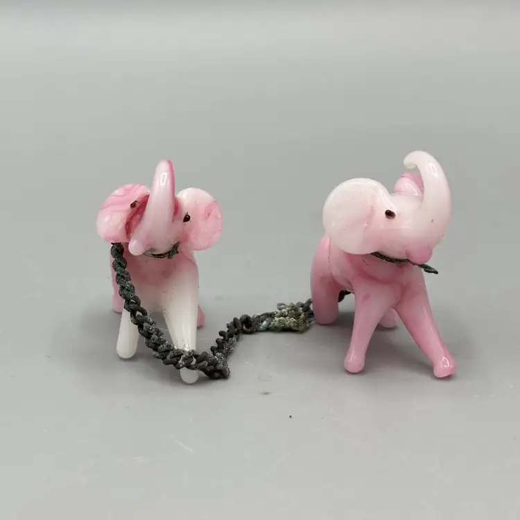These glass elephants are in good overall condition; the chain has broken off of the mother elephant and the chain overall is fragile and has patina. The mother elephant measures approximately 2 1/4" tall x 2 1/2" x 1". The baby elephants measure approximately 1" tall x 1" x 1/2".