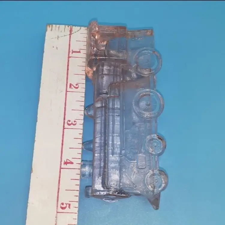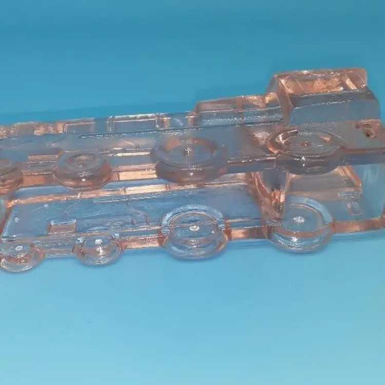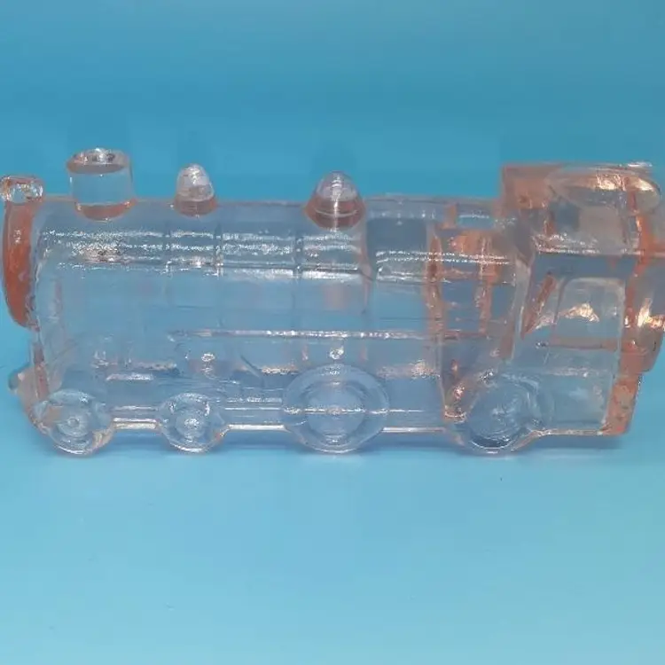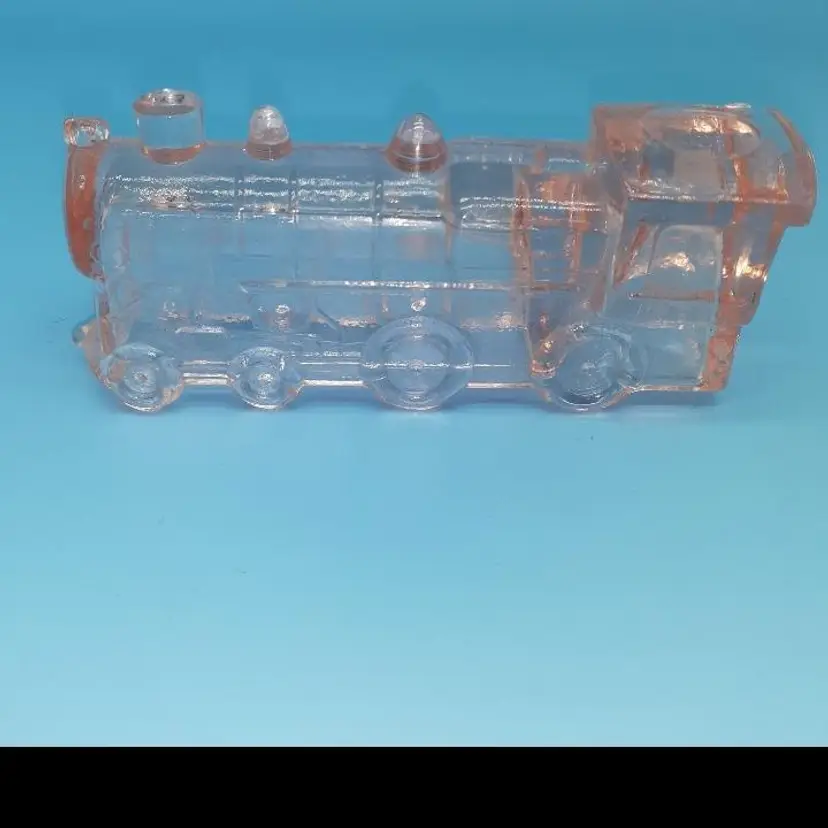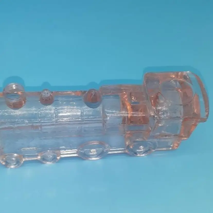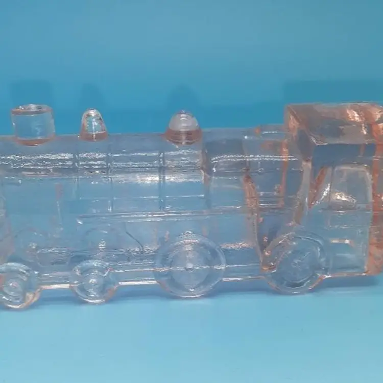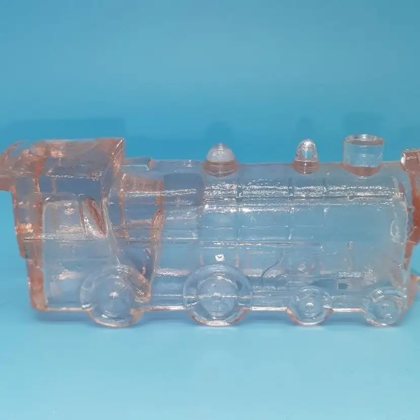 Vintage pink glass train locomotive railroad candy box candy holder. believe this piece is made by Jeannette glass. In great vintage condition measures approximately 5 in Long 2 in wide In excellent vintage condition no chips cracks repairs please see all pictures as they are the best description all items from a smoke-free home with pets experienced fragile shipper