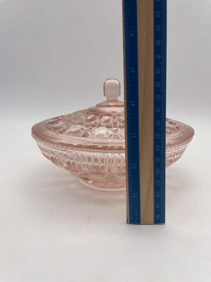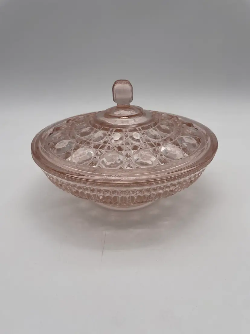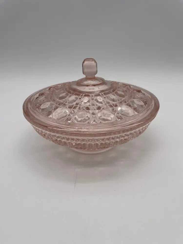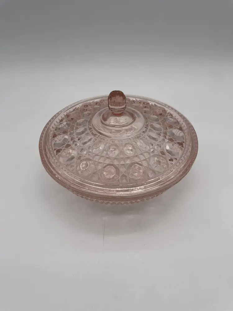 Vintage Pink Indiana Glass Windsor Button And Cane Candy Dish With Lid