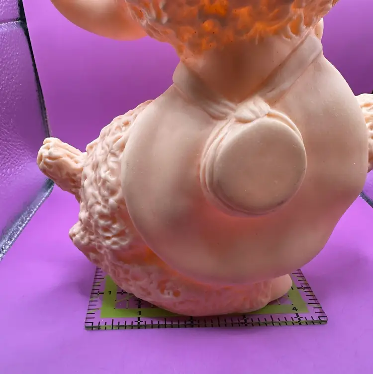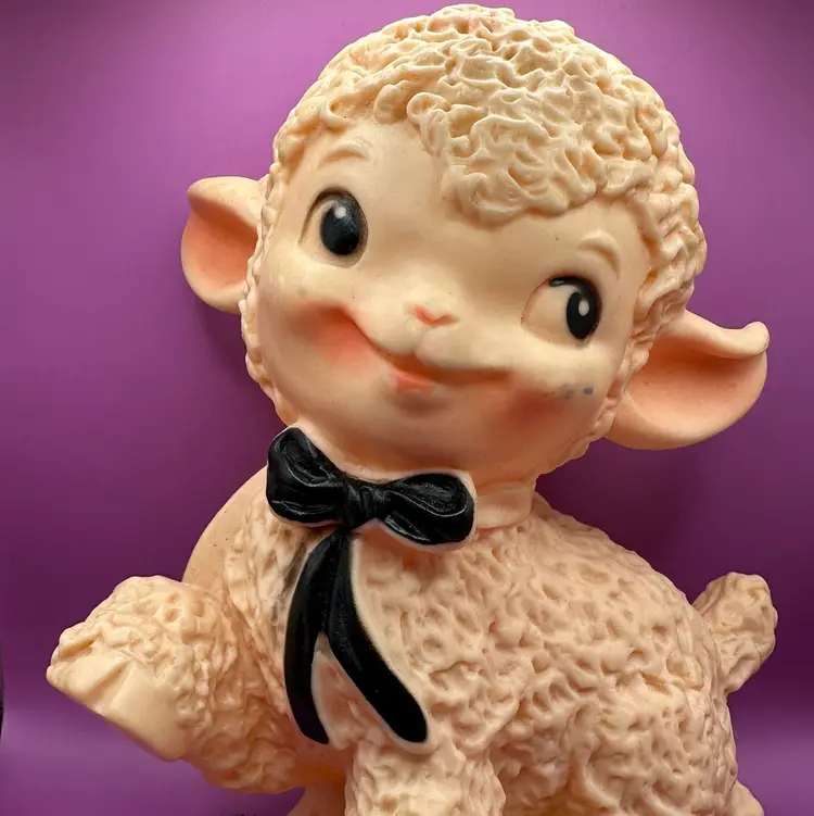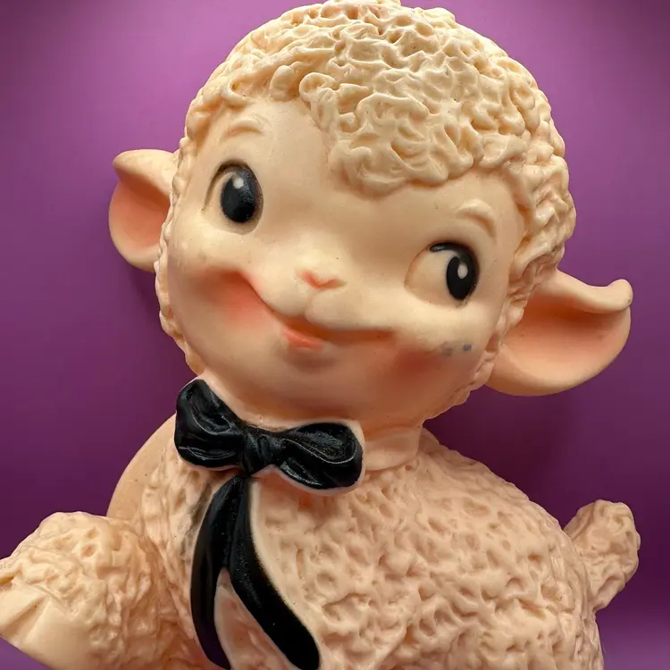 This toy has normal wear from use but is in great condition for its age. The metal squeaker mechanism works.