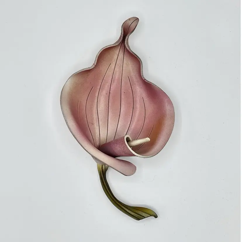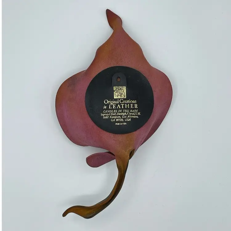 Made by Original Creations In Leather (Candles in the Rain), this leather Calla Lily hanging is a unique piece. It would make a great gift for a loved one or for a third anniversary.