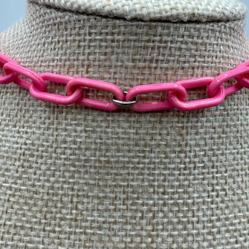 Vintage Pink Lucite Necklace UV Glow. Excellent vintage condition. Measures 24”