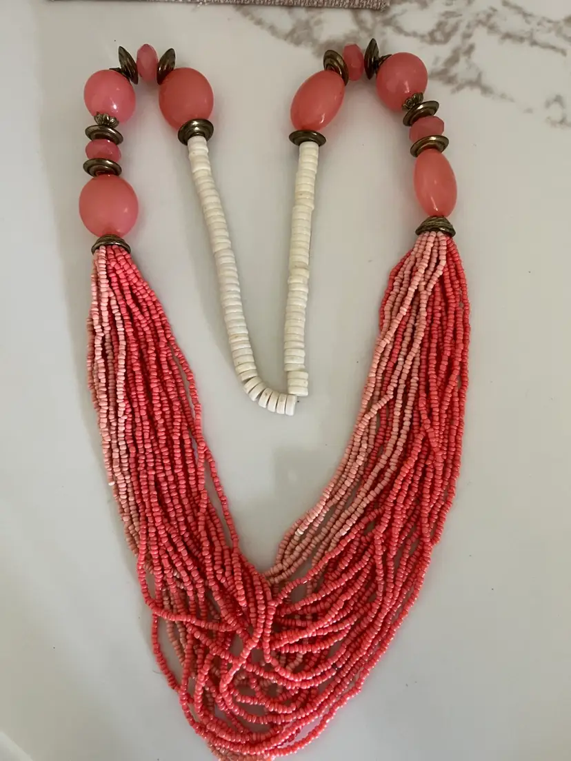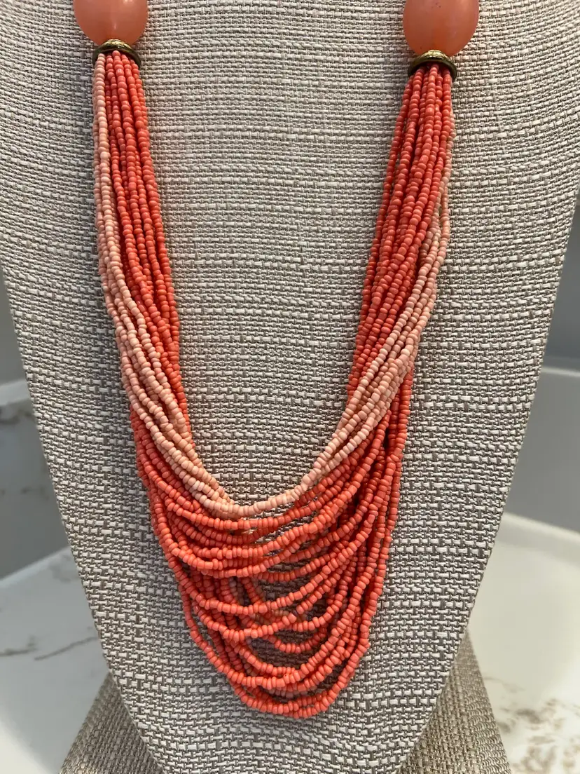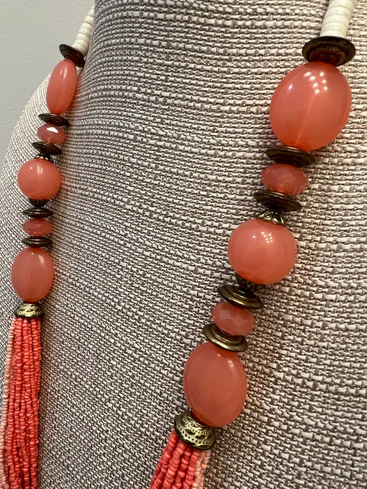 Beautiful Variegated Pink Seed Beads & Pink Lucite Beads Brass Findings Complete this stunning Bohemian Look Statement Necklace.