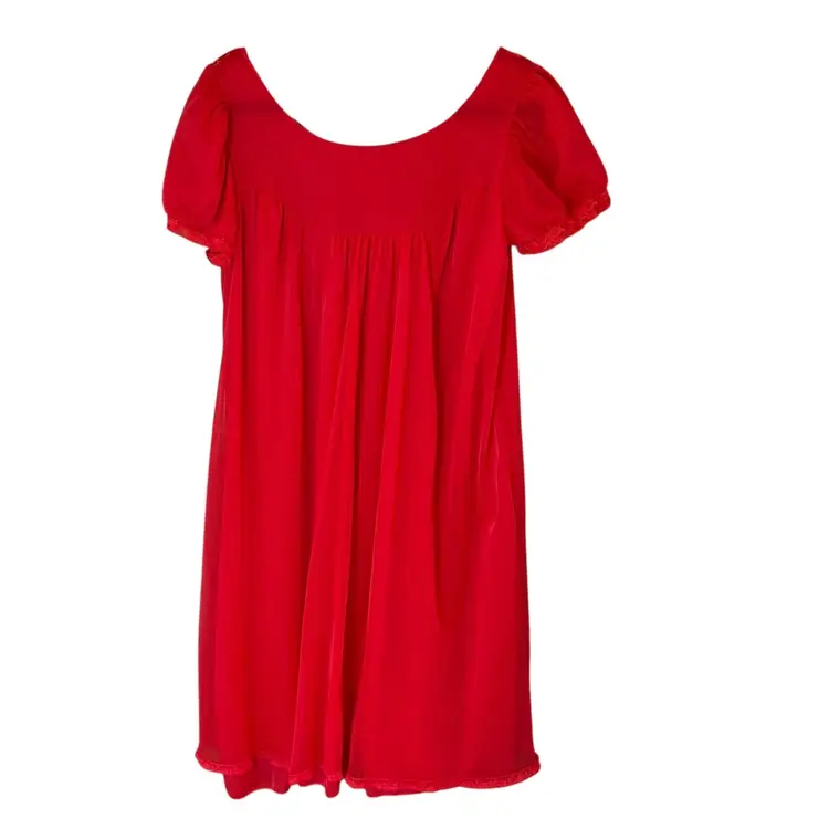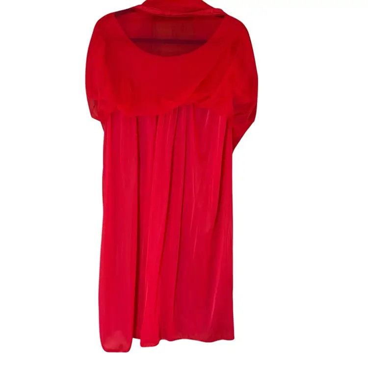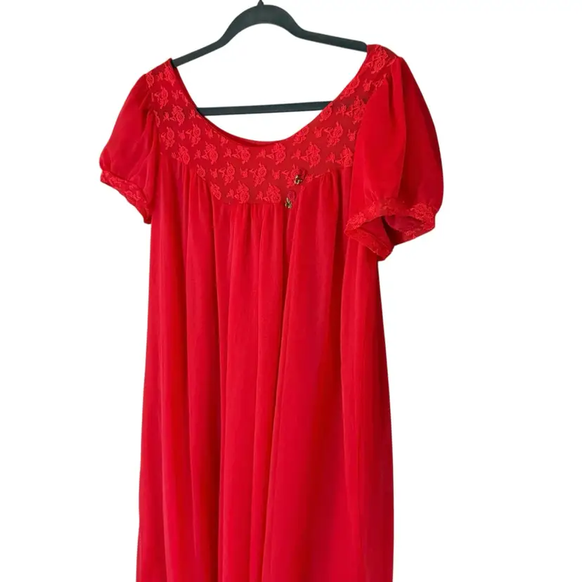 This vintage pinkish red babydoll nightgown lingerie exudes a feminine and romantic vibe, perfect for Valentine's Day or summer nights. Made from chiffon nylon fabric with delicate lace accents, this gown features a round neck, short sleeves and a lining for a comfortable fit. The pullover closure adds convenience, while the grandmillennial themed design adds a touch of retro charm. Ideal for women looking for a romantic and charming sleepwear option.
