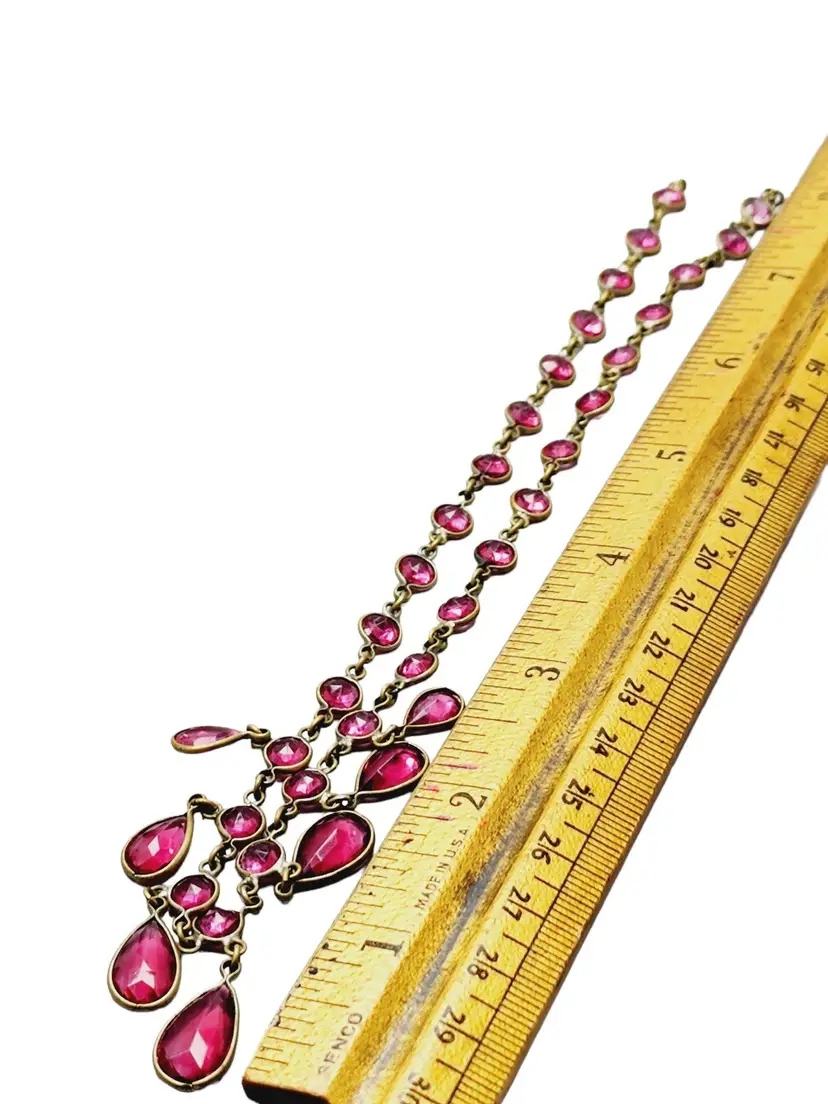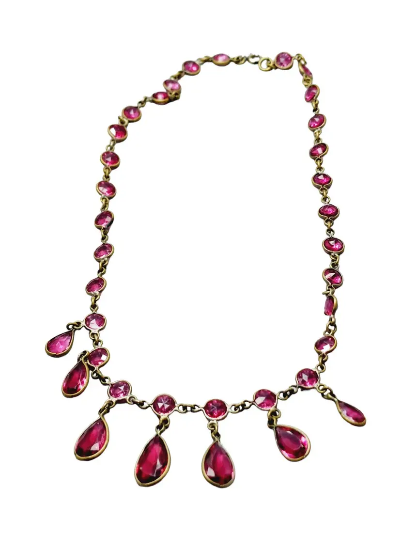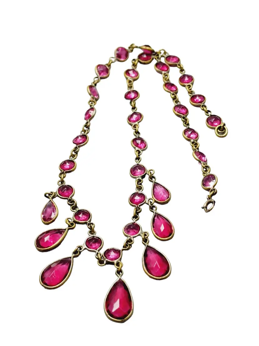 Vintage Pink Riviere Art Deco Teardrop Glass & Round Stones Necklace (A1497)