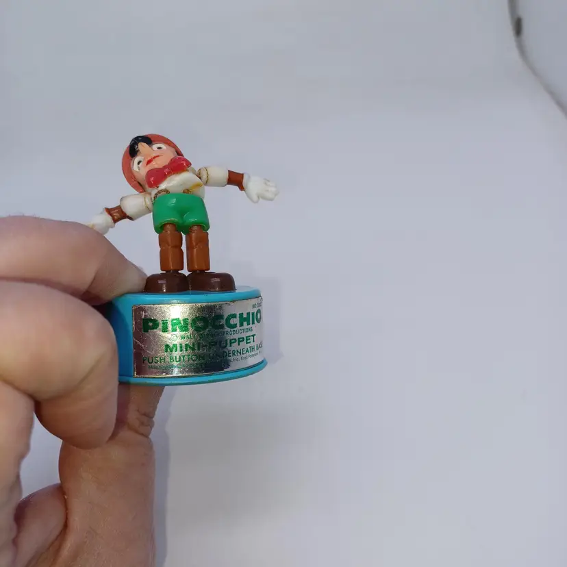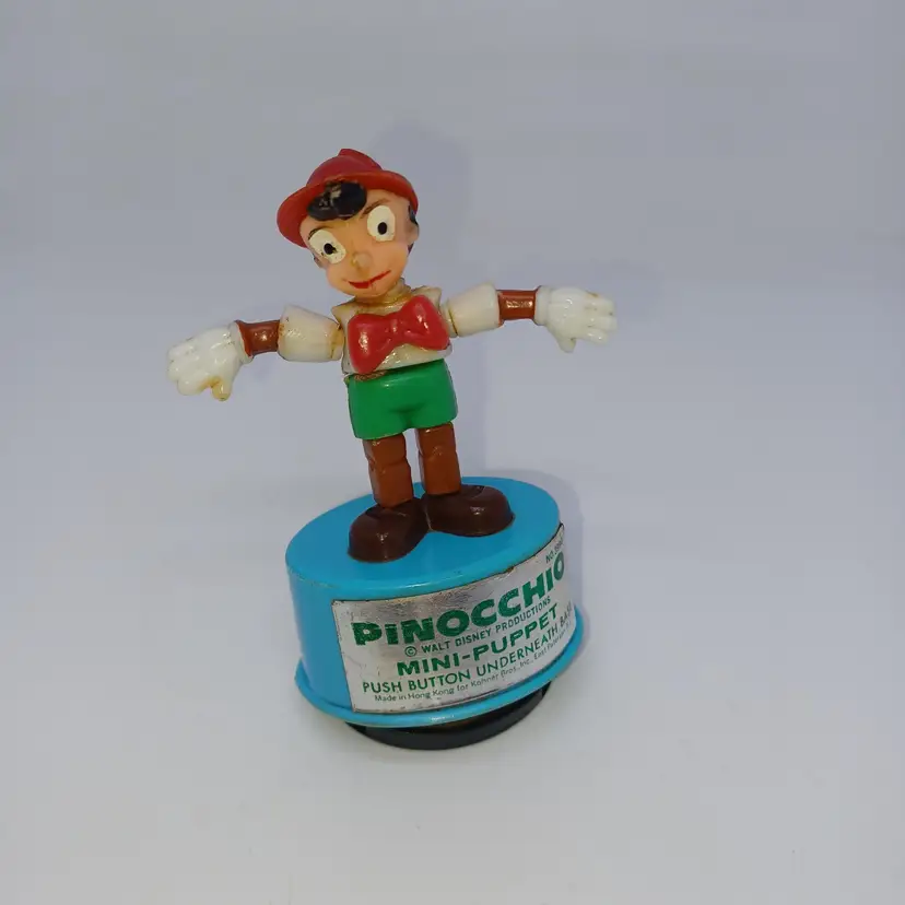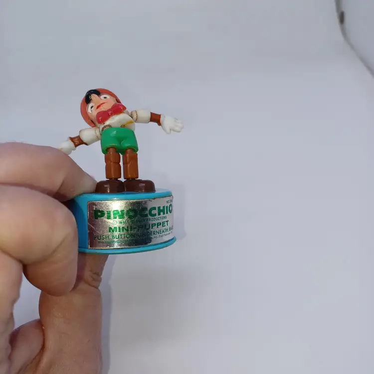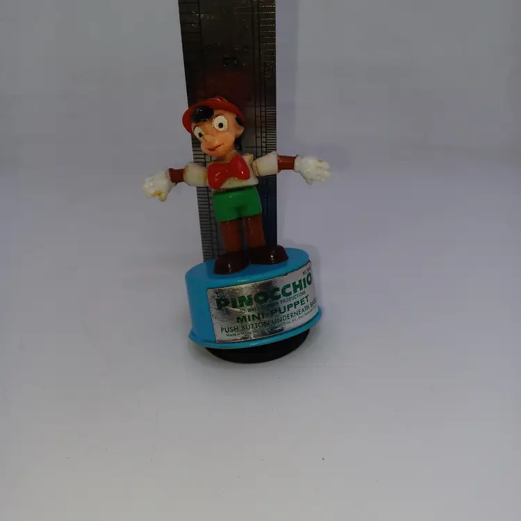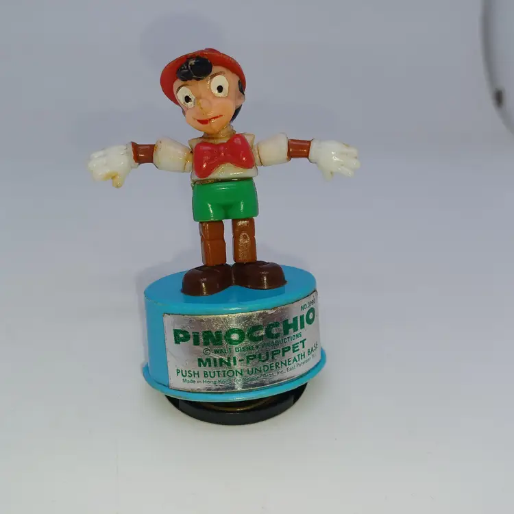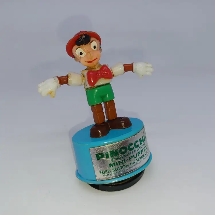 Vintage PINOCCHIO Disney Kohner Mini Push Button Puppet Toy Hong Kong Measures 2 1/2 in In good vintage condition with normal age-related Wear the bottom push button does poke out In an angle, it can be fixed by bending the interior Spring. But I will leave that UP 2 the new owner. Please see all pictures. As they are the best description, all items from a smoke-free home withpets experienced shipper.