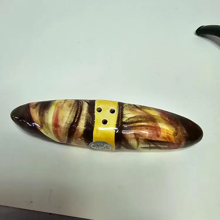 Vintage Tage pipe and cigar Shaker set. They both have the original stickers. Hand painted Nikoniko china EW Japan. No chips no cracks with some crazing. The cigar is 4.75" long and the pipe is 4.25" long x 1.5" tall. The cigar is missing the stopper.