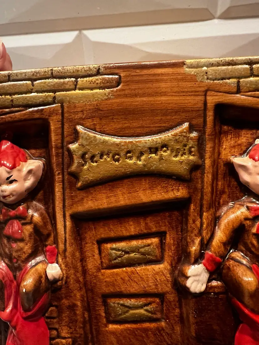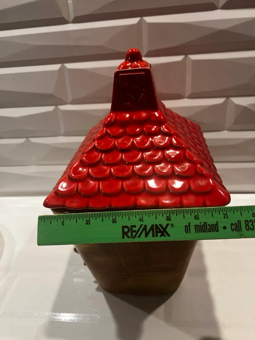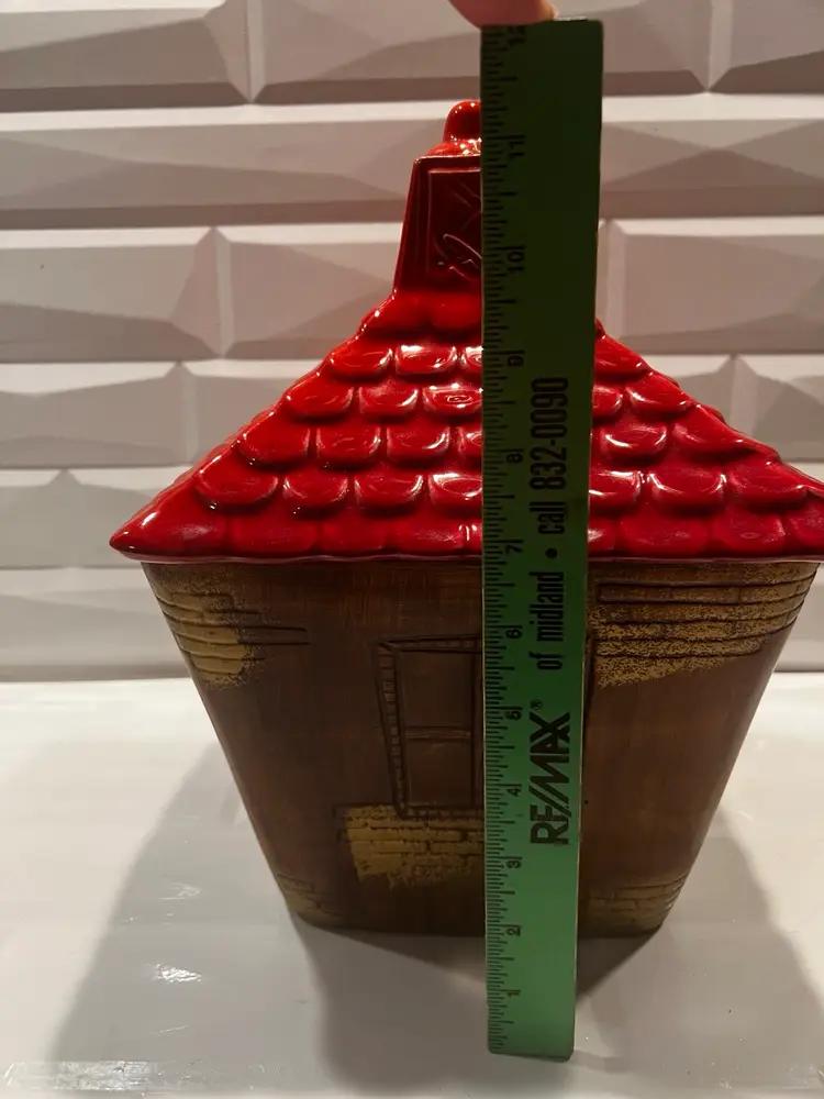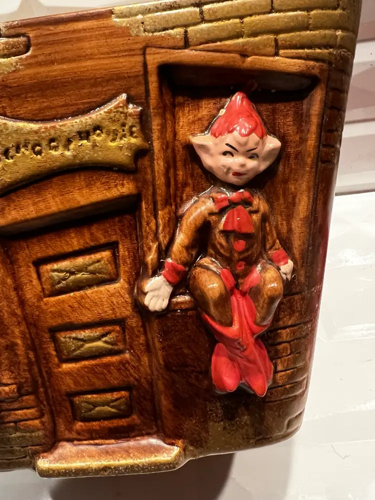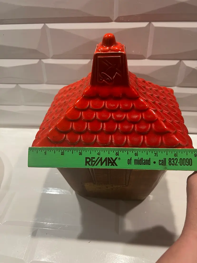 Vintage Gilner Schoolhouse pixie cookie jar, in good condition 11” tall, 9”wide, 7” depth