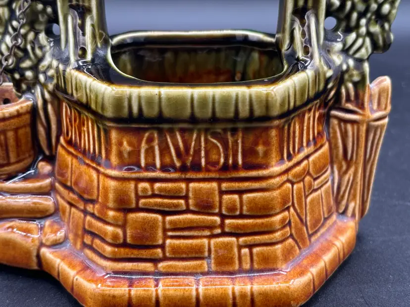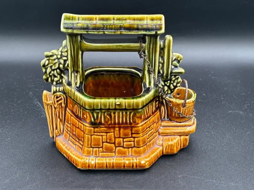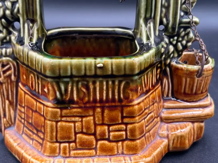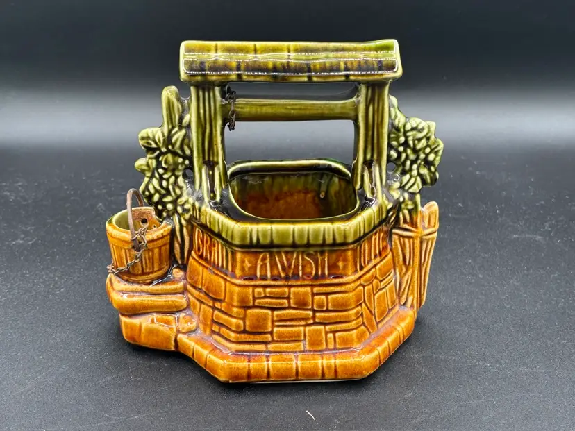 Vintage planter - brown & green Wishing Well (2.75” x 2.75” square opening)