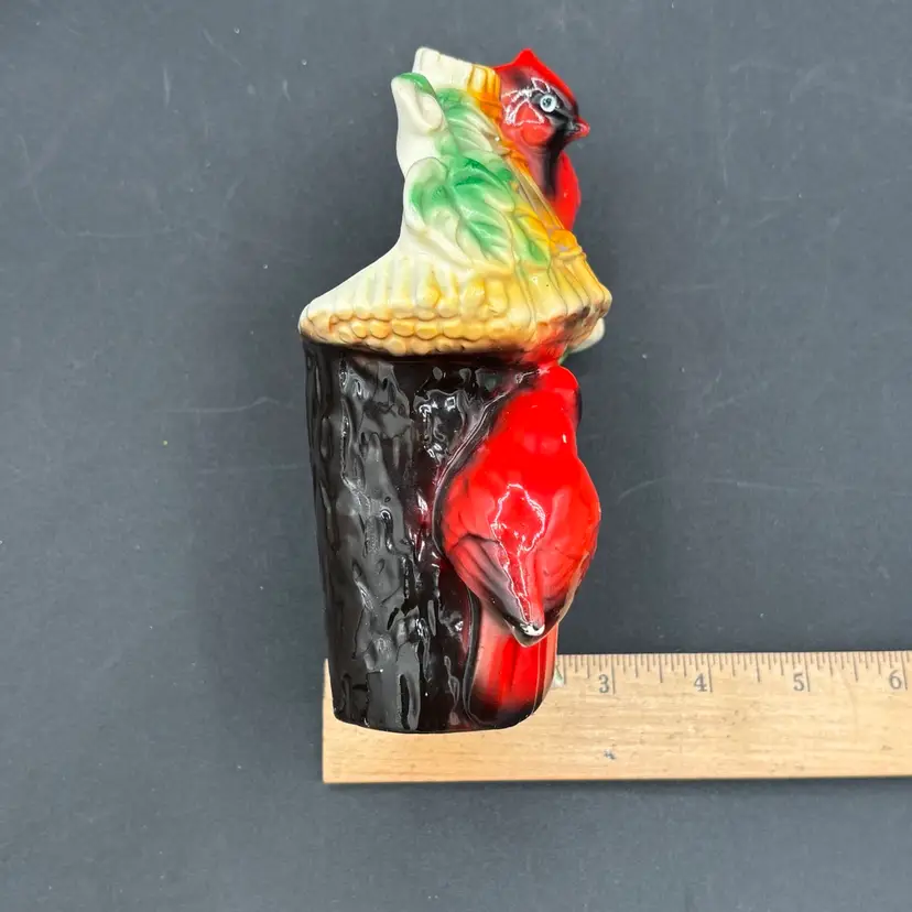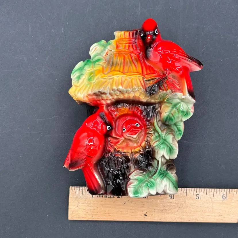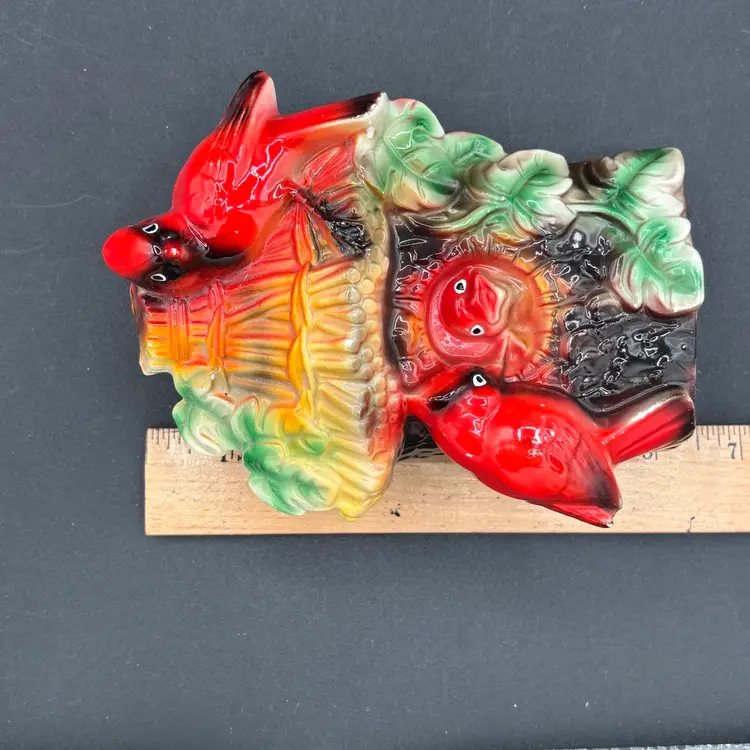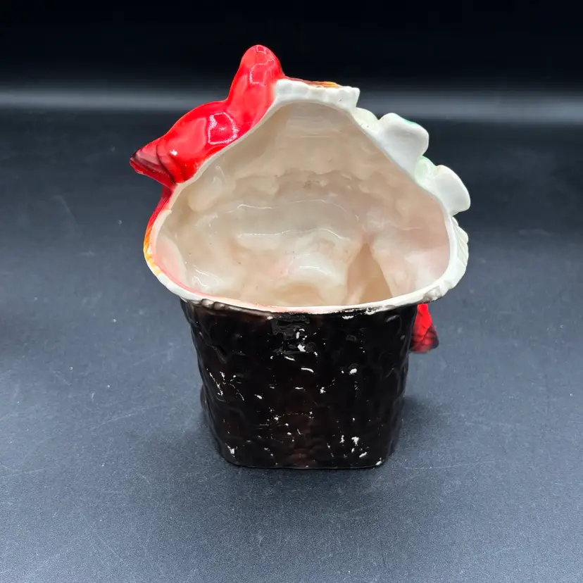 Vintage planter - cardinals on tree house - made in Japan