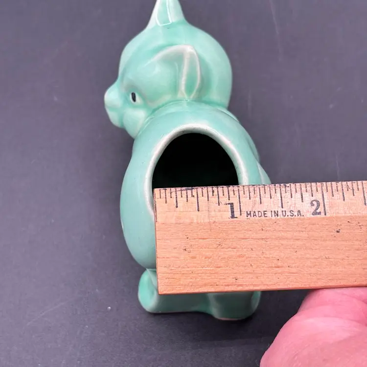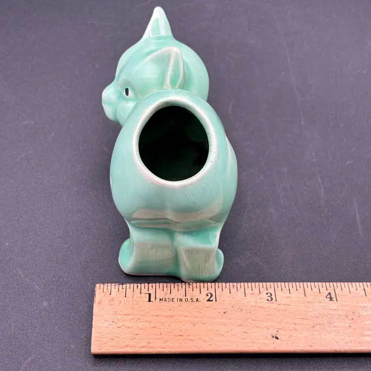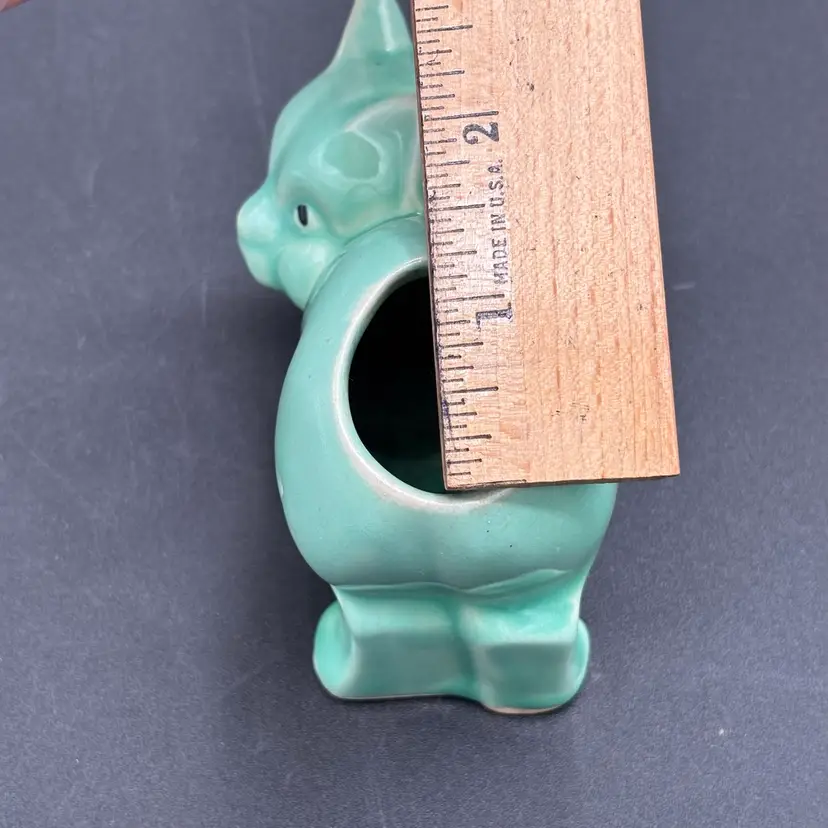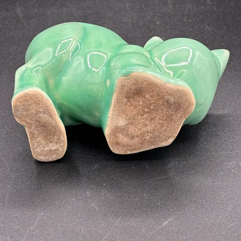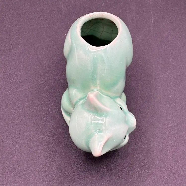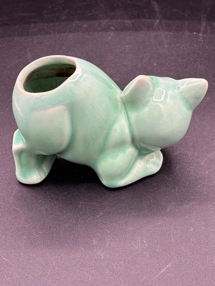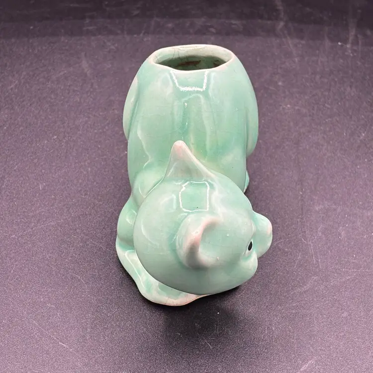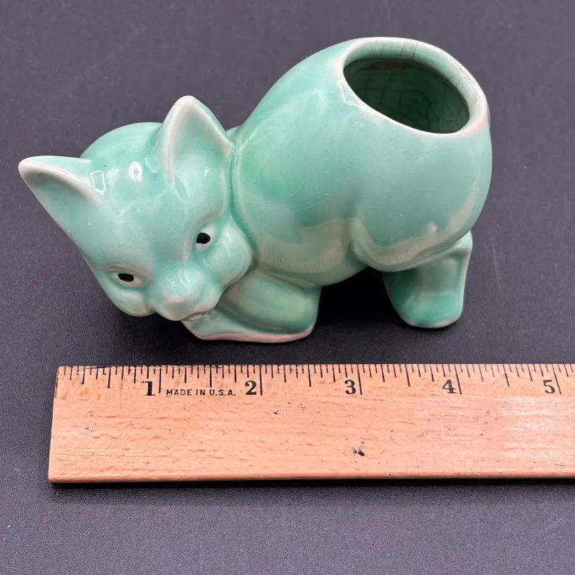 Vintage planter - Morton Pottery Aqua crouched kitten ~ 4”x2”, opening 1”x1”