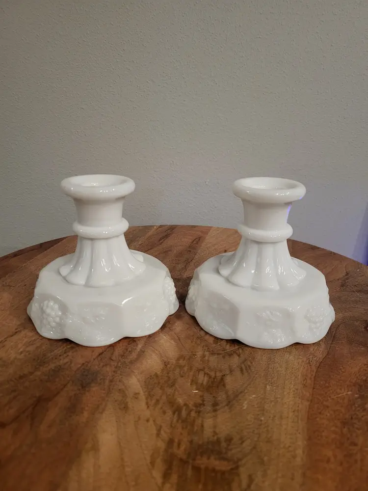 Like new pair of Westmoreland candle holders. Can be used for pillar candles or candlesticks. See pictures for measurements. Shipping cost is based on your location, size and weight of box item is shipped in. If you feel shipping cost is to high let me know what your zip code is and I can see if there is a cheaper option. Shipping is done by USPS, I choose cheapest option when listing but shipping will be USPS. I do combine shipping if you buy more than one item from my store. Any questions please do not hesitate to ask.