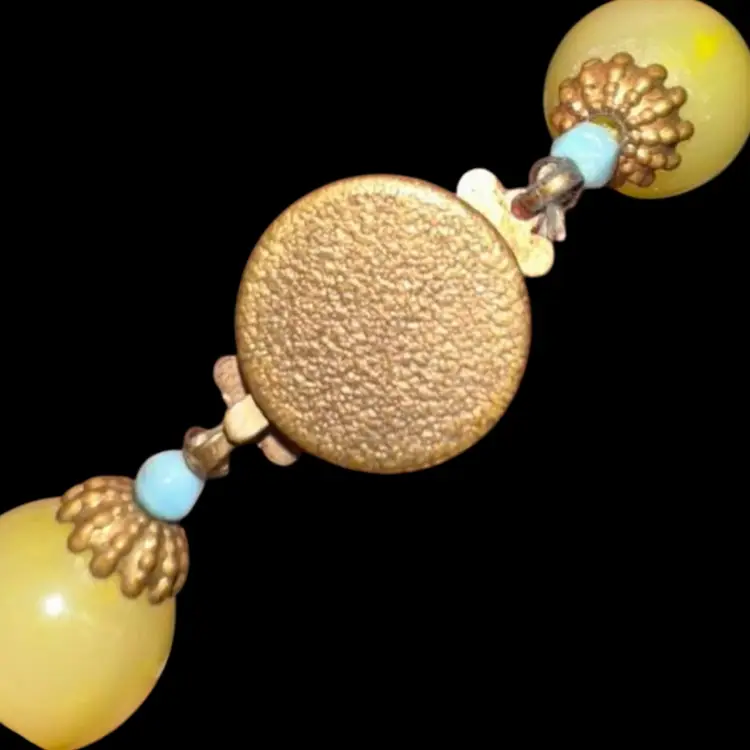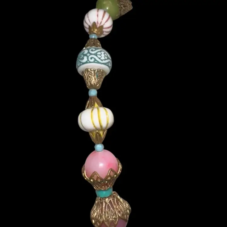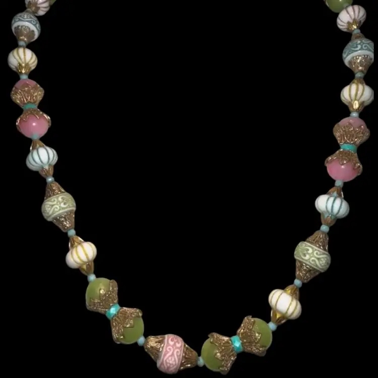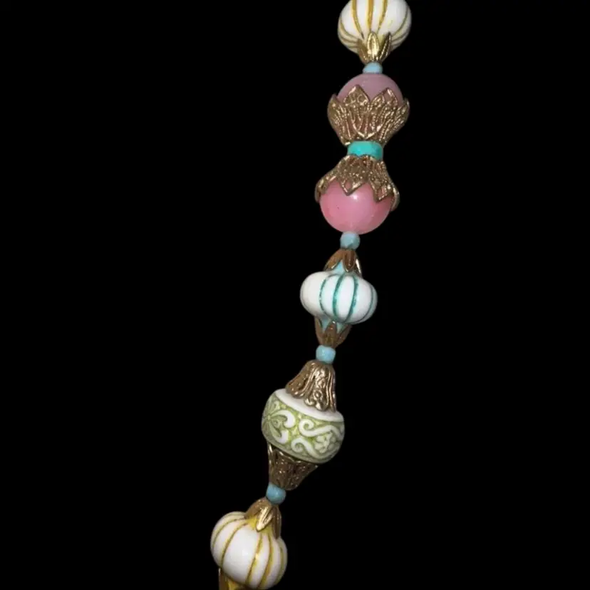 Vintage plastic beaded necklace How fund is this one in its pastel coloring No issues That is right about 10 1/2 inches